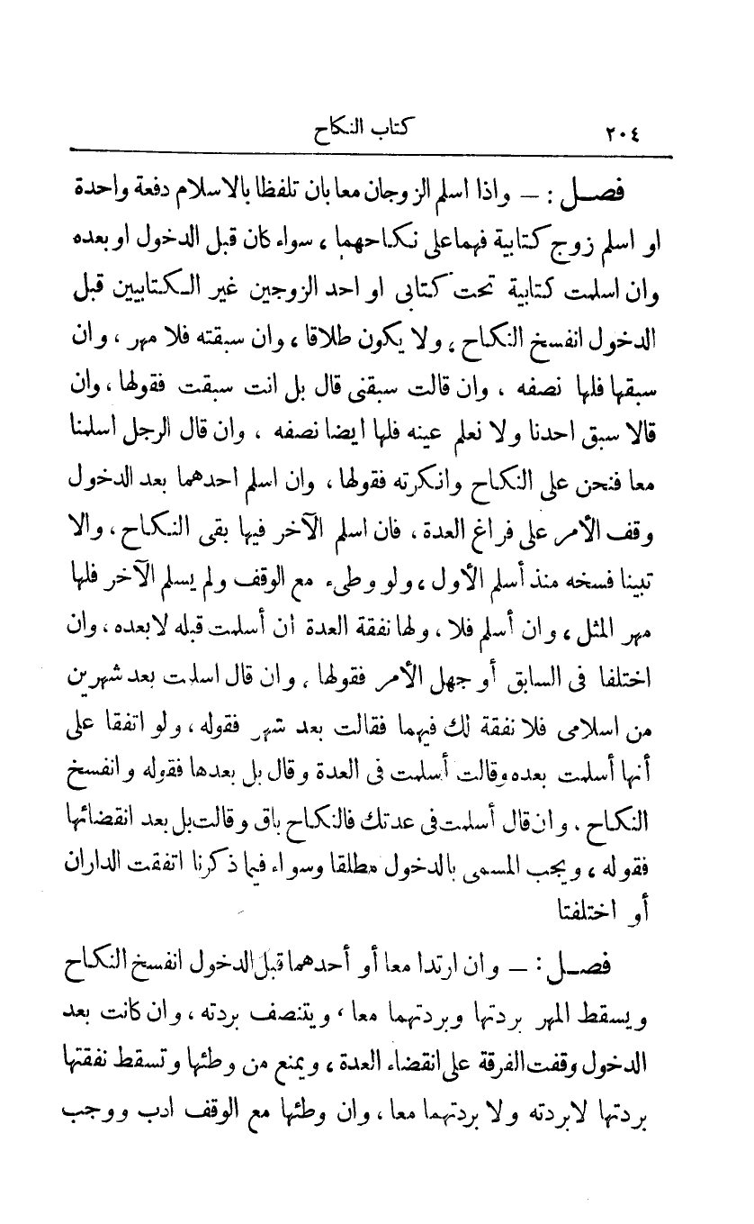 فصل: - وإذا أسلم الزوجان معا بأن تلفظا بالإسلام دفعة واحدة أو أسلم زوج كتابية فهما على نكاحهما سواء كان قبل الدخول أو بعده وأن أسلمت كتابية تحت كتابي أو أحد الزوجين غير الكتابيين قبل الدخول انفسخ النكاح ولا يكون طلاقا وإن سبقته فلا مهر وإن سبقها فلها نصفه وإن قالت سبقني قال بل أنت سبقت فقولها وإن قالا سبق أحدنا ولا نعلم عينه فلها أيضا نصفه وإن قال الرجل أسلمنا معا فنحن على النكاح وأنكرته فقولها وإن أسلم أحدهما بعد الدخول وقف الأمر على فراغ العدة فإن أسلم الآخر فيها بقي النكاح وإلا تبينا فسخه منذ أسلم الأول ولو وطئ مع الوقف ولم يسلم الآخر فلها مهر المثل وإن أسلم فلا ولها نفقة العدة إن أسلمت قبله لا بعده وإن اختلفا في السابق أو جهل الأمر فقولها وإن قال أسلمت بعد شهرين من إسلامي فلا نفقة لك فيهما فقالت بعد شهر فقوله ولو اتفقا على أنها أسلمت بعده وقالت أسلمت في العدة وقال بل بعدها فقوله وانفسخ النكاح وإن قال أسلمت في عدتك فالنكاح باق وقالت بل بعد انقضائها فقوله ويجب المسمى بالدخول مطلقا وسواء فيما ذكرنا اتفقت الداران أو اختلفتا.