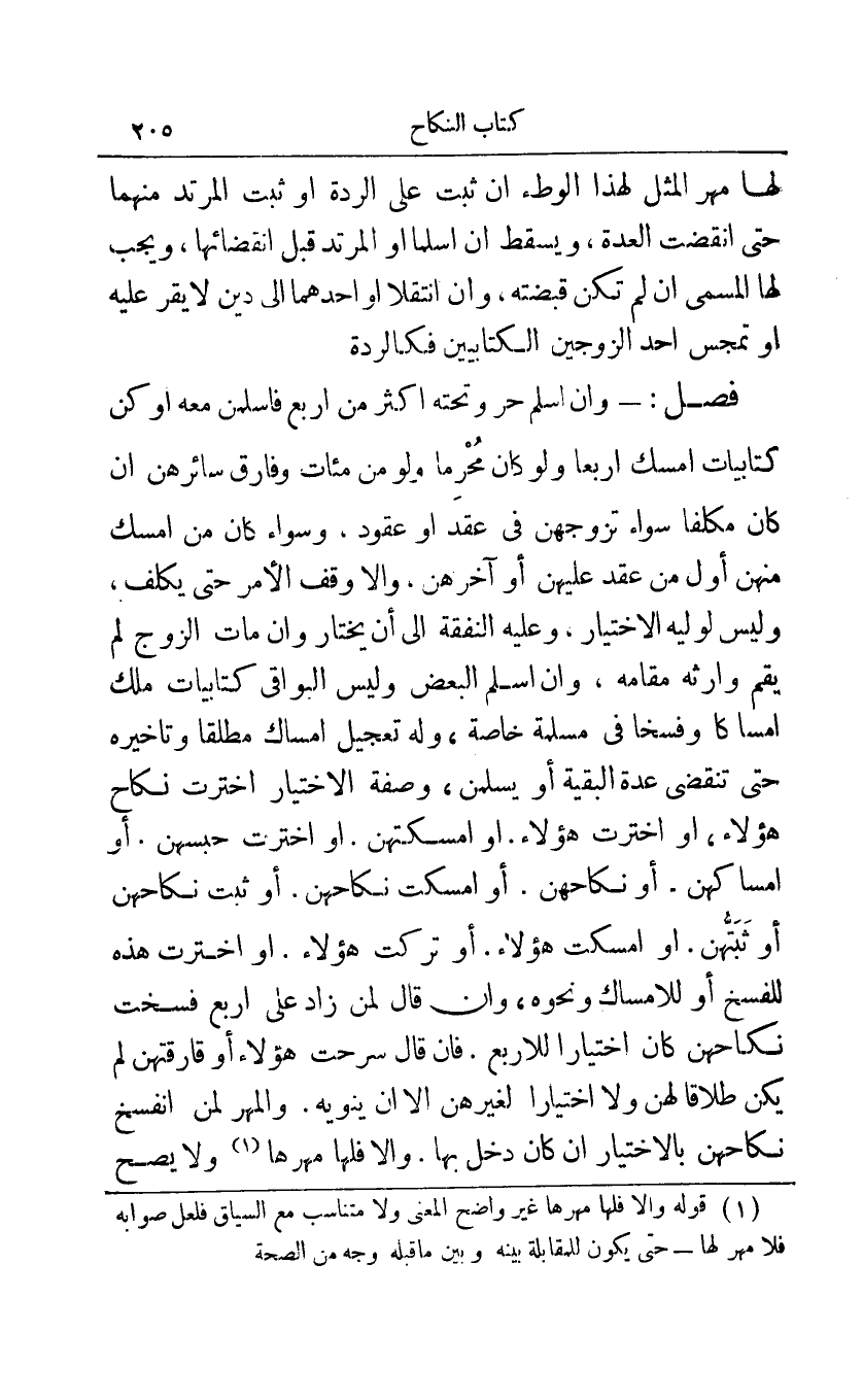 1 قوله وإلا فلها مهرها غير واضح المعنى ولا متناسب مع السياق فلعل صوابه فلا مهر لها – حتى يكون للمقابلة بينه وبين ما قبله وجه من الصحة.