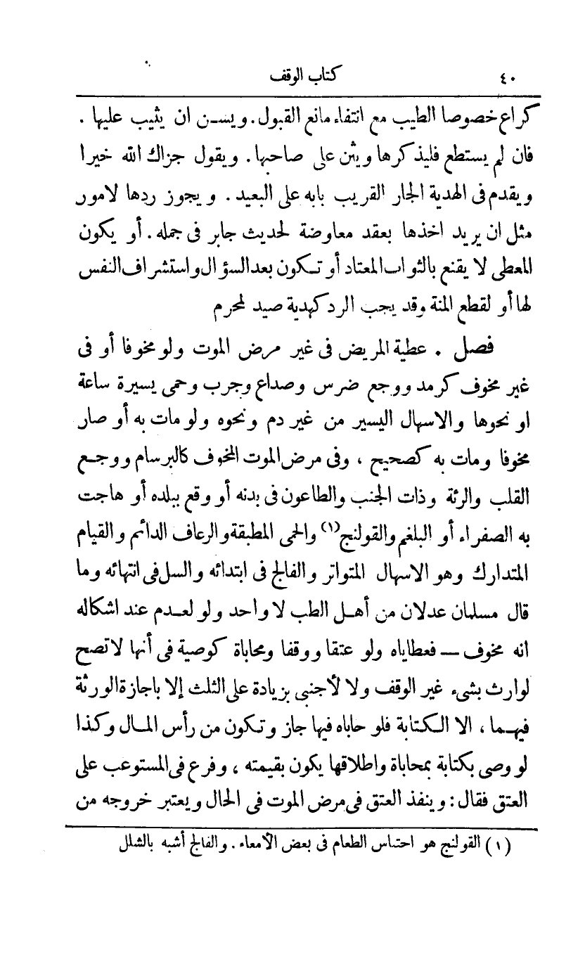 1 الوقلنج هو احتباس الطعام في بعض الأمعاء. والفالج أشبه بالشلل.