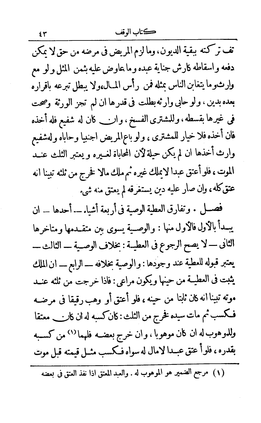 فصل: وتفارق العطية الوصية في أربعة أشياء - أحدها - أن يبدأ بالأول فالأول منها: والوصية يسوي بين متقدمها ومتأخرها الثاني - لا يصح الرجوع في العطية: بخلاف الوصية - الثالث - يعتبر قبوله للعطية عند وجودها: والوصية بخلافه - الرابع - أن الملك يثبت في العطية من حينها ويكون مراعي: فإذا خرجت من ثلثه عند موته تبينا أنه كان ثابتا من حينه فلو أعتق أو وهب رقيقا في مرضه فكسب ثم مات سيده فخرج من الثلث: كان كسبه له أن كان معتقا وللموهوب له أن كان موهوبا وأن خرج بعضه فلهما1 من كسبه بقدره فلو أعتق عبدا لا مال له سواه فكسب مثل قيمته قبل موت