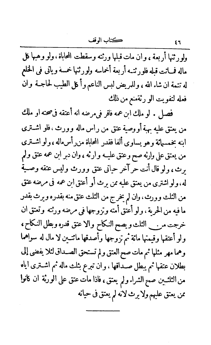 فصل: لو ملك ابن عمه فأقر في مرضه أنه أعتقه في صحته أو ملك من يعتق عليه بهبة أو وصية عتق من رأس ماله وورث فلو اشترى ابنه بخمسمائة وهو يساوي ألفا فقدر المحاباة من رأس ماله ولو اشترى من يعتق على وارثه صح وعتق عليه وارثه وأن دبر ابن عمه عتق ولم يرث ولو قال أنت حر آخر حياتي عتق وورث وليس عتقه وصية له ولو أشترى من يعتق عليه ممن يرث أو أعتق ابن عمه في مرضه عتق من الثلث وورث وأن لم يخرج من الثلث عتق منه بقدره ويرث بقدر ما فيه من الحرية ولو أعتق أمته وتزوجها في مرضه ورثته وتعتق أن خرجت من الثلث ويصح النكاح وإلا عتق قدره وبطل النكاح ولو أعتقها وقيمتها مائة ثم تزوجها وأصدقها مائتين لا مال له سواهما وهما مهر مثلها ثم مات صح العتق ولم تستحق الصداق لئلا يفضي إلى بطلان عتقها ثم يبطل صداقها وأن تبرع بثلث ماله ثم أشترى إياه من الثلثين صح الشراء ولم يعتق فإذا مات عتق على الورثة أن كانوا ممن يعتق عليهم ولا يرث لأنه لم يعتق في حياته.