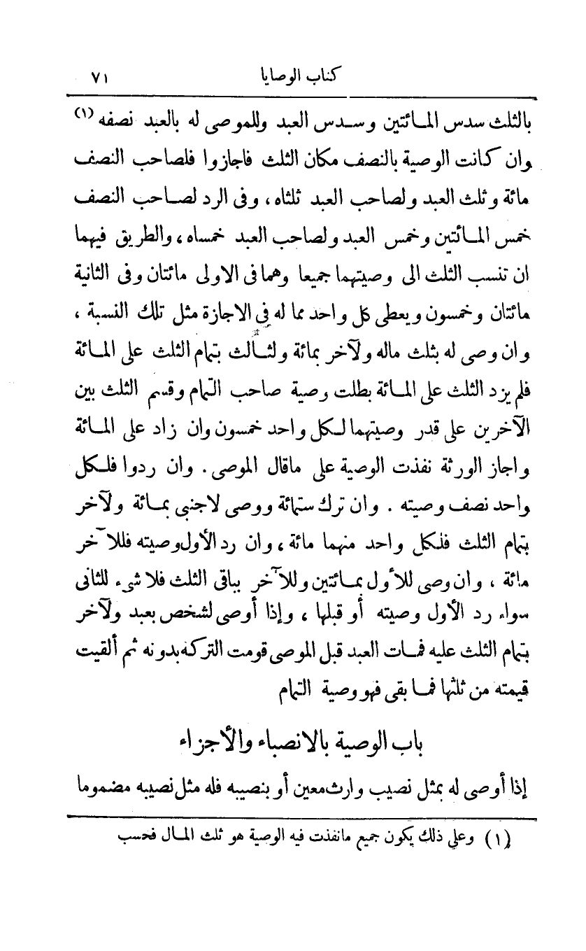 1 وعلى ذلك يكون جميع ما نفذت فيه الوصية هو ثلث المال فحسب.