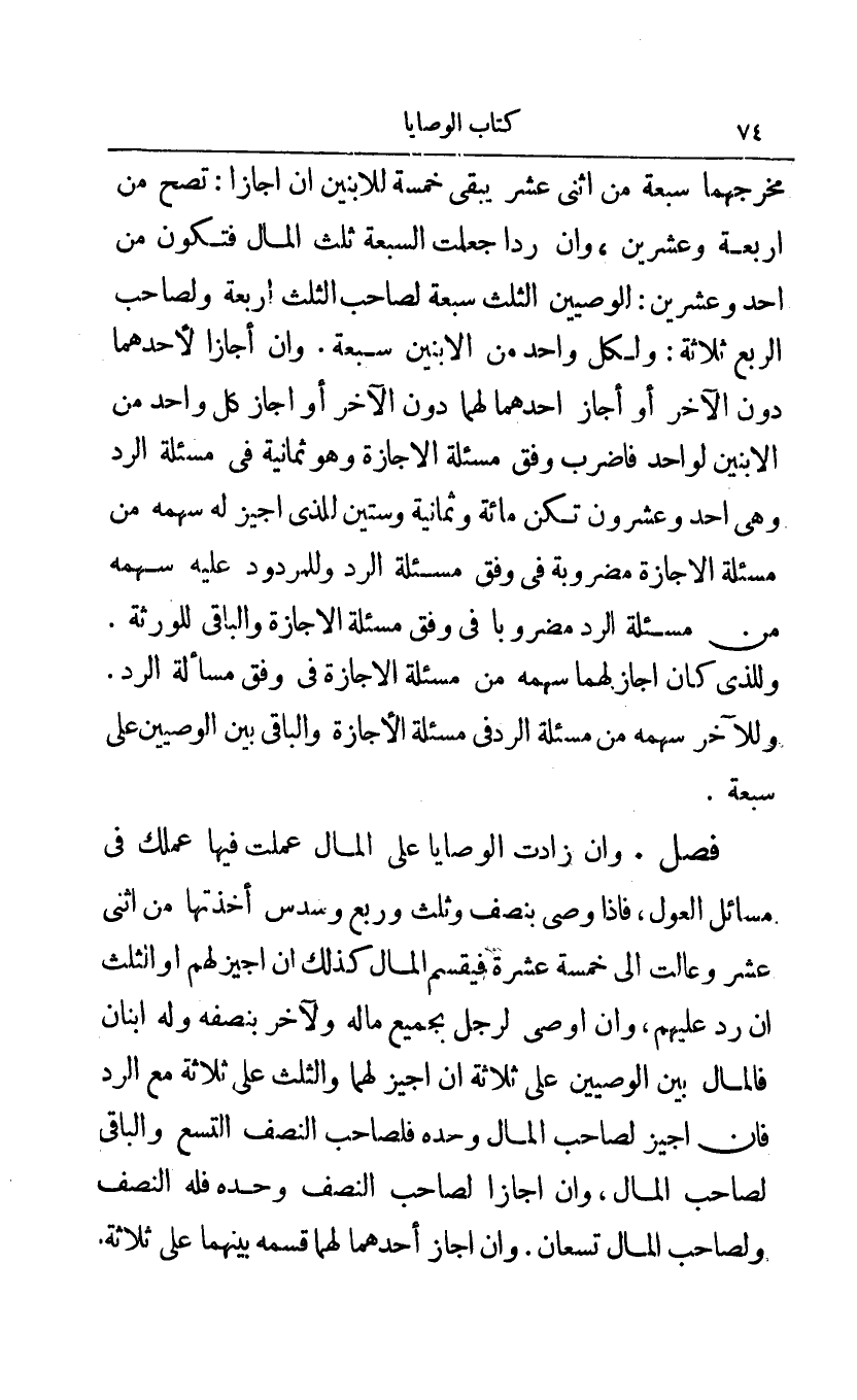 مخرجهما سبعة من اثني عشر يبقى خمسة للابنين أن أجازا: تصح من أربعة وعشرين وأن ردا جعلت السبعة ثلث المال فتكون من أحد وعشرين: الوصيين الثلث سبعة لصاحب الثلث أربعة ولصاحب الربع ثلاثة: ولكل واحد من الابنين سبعة وأن أجازا لأحدهما دون الآخر أو أجاز أحدهما لهما دون الآخر أو أجاز كل واحد من الابنين لواحد فاضرب وفق مسألة الإجازة وهو ثمانية في مسألة الرد وهي أحد وعشرون تكن مائة وثمانية وستين للذي أجيز له سهمه من مسألة الإجازة مضروبة في وفق مسألة الرد وللمردود عليه سهمه من مسألة الرد مضروبا في وفق مسألة الإجازة والباقي للورثة وللذي كان أجاز لهما سهمه من مسألة الإجازة في وفق مسألة الرد وللآخر سهمه من مسألة الرد في مسألة الإجازة والباقي بين الوصيين على سبعة.