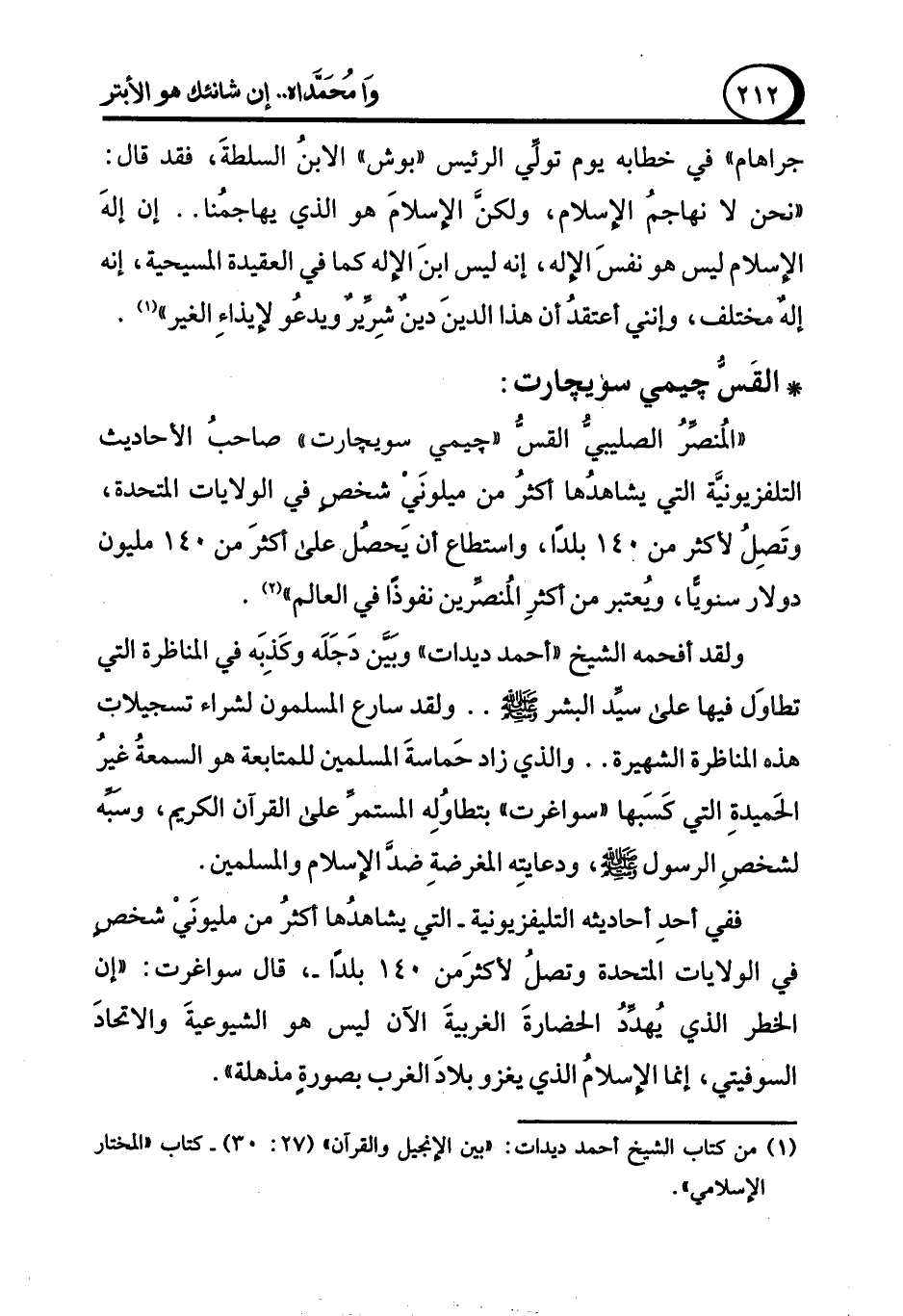 (¬1) من كتاب الشيخ أحمد ديدات: "بين الإنجيل والقرآن" (27: 30) - كتاب "المختار الإسلامي".