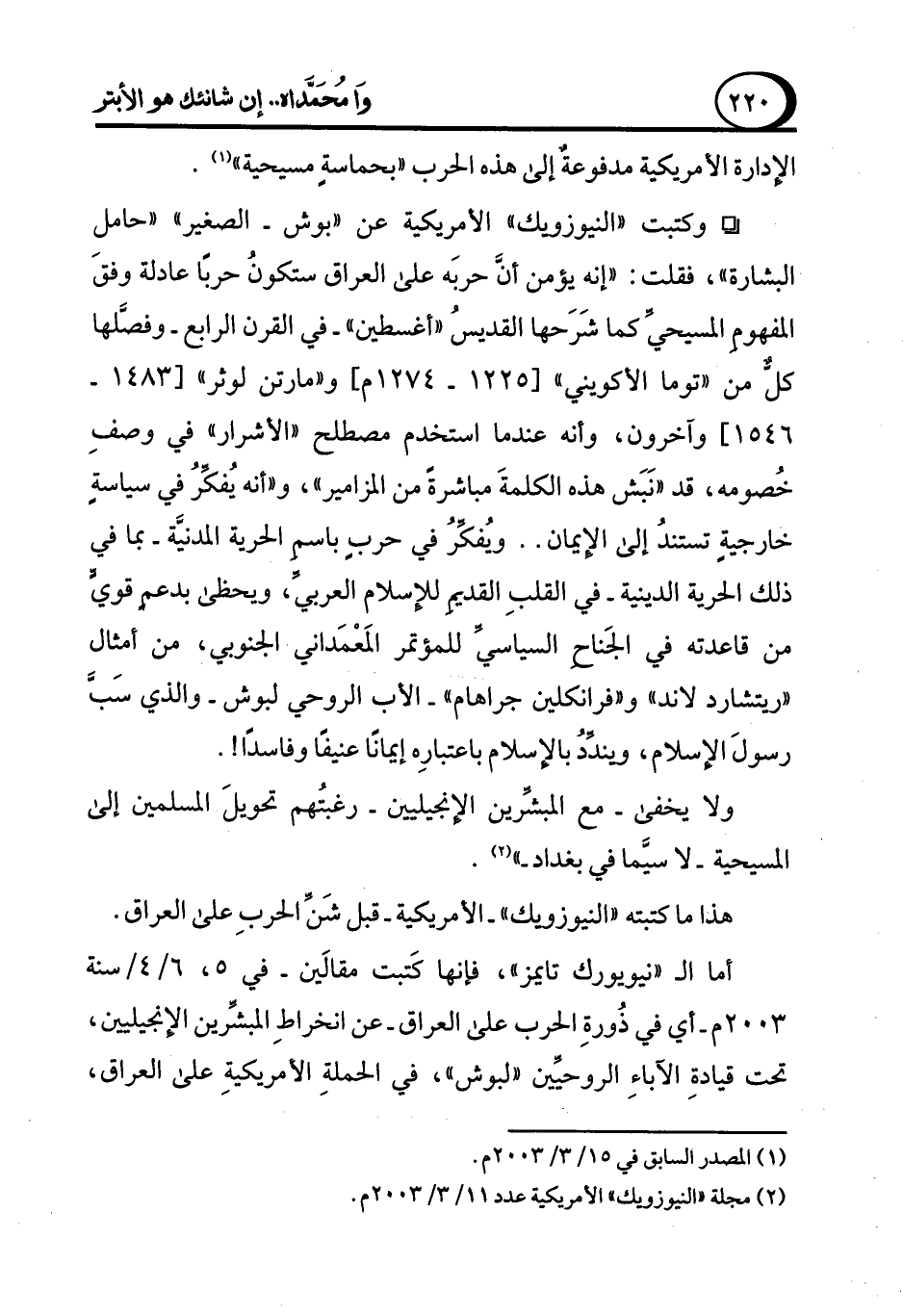 (¬2) مجلة "النيوزويك" الأمريكية عدد 11/ 3/ 2003م.