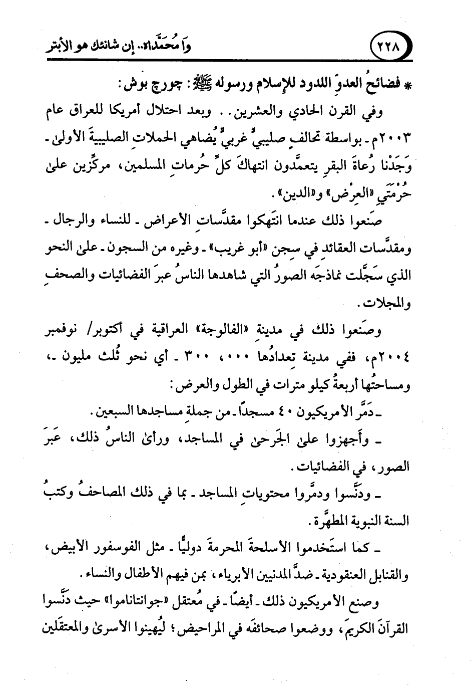 * فضائحُ العدوِّ اللدود للإسلام ورسوله - صلى الله عليه وسلم -: جورج بوش: