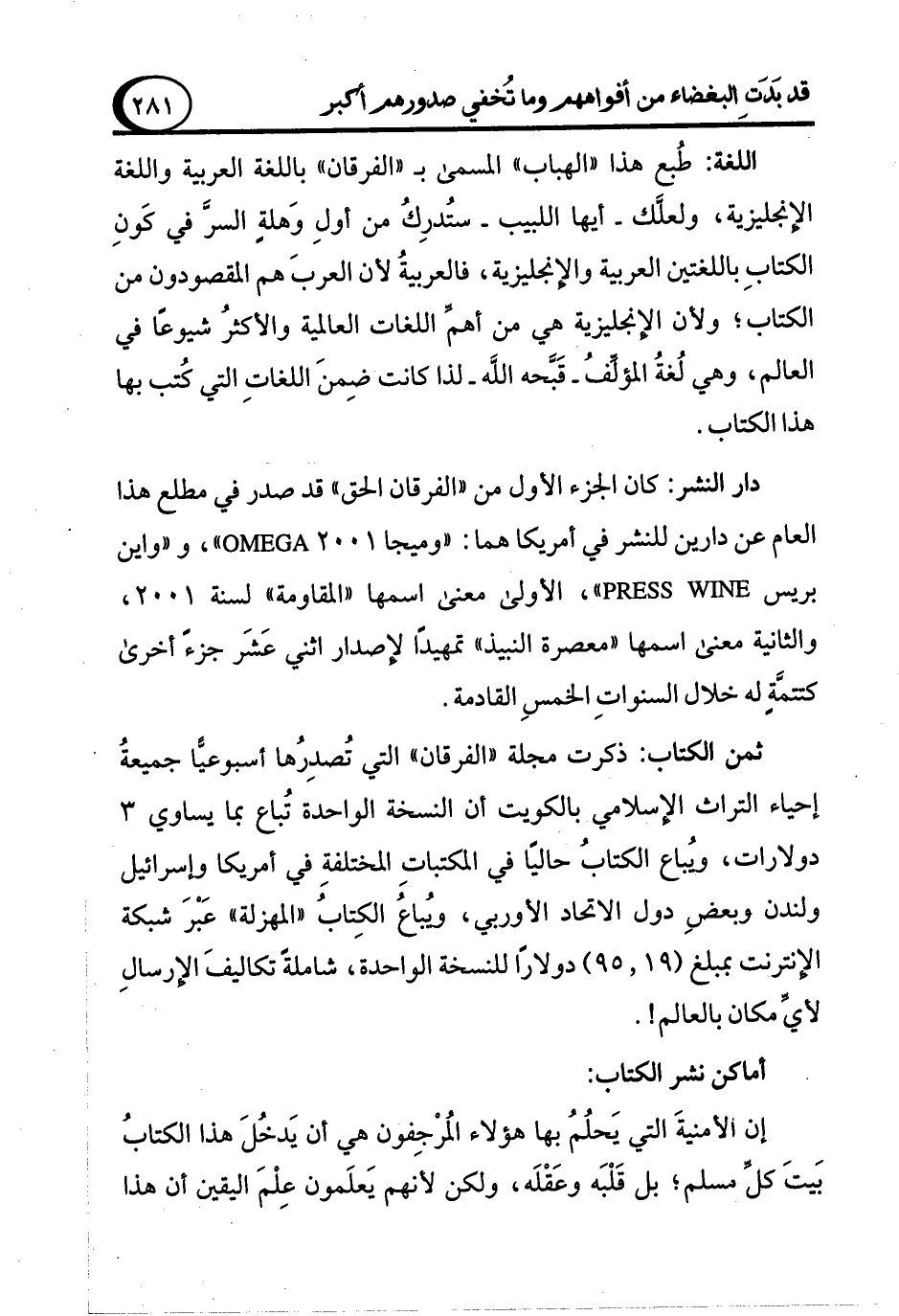 إن الأمنيةَ التي يَحلُمُ بها هؤلاء المُرْجِفون هي أن يَدخُلَ هذا الكتابُ بَيتَ كلِّ مسلم؛ بل قَلْبَه وعَقْلَه، ولكن لأنهم يَعلَمون عِلْمَ اليقين أن هذا