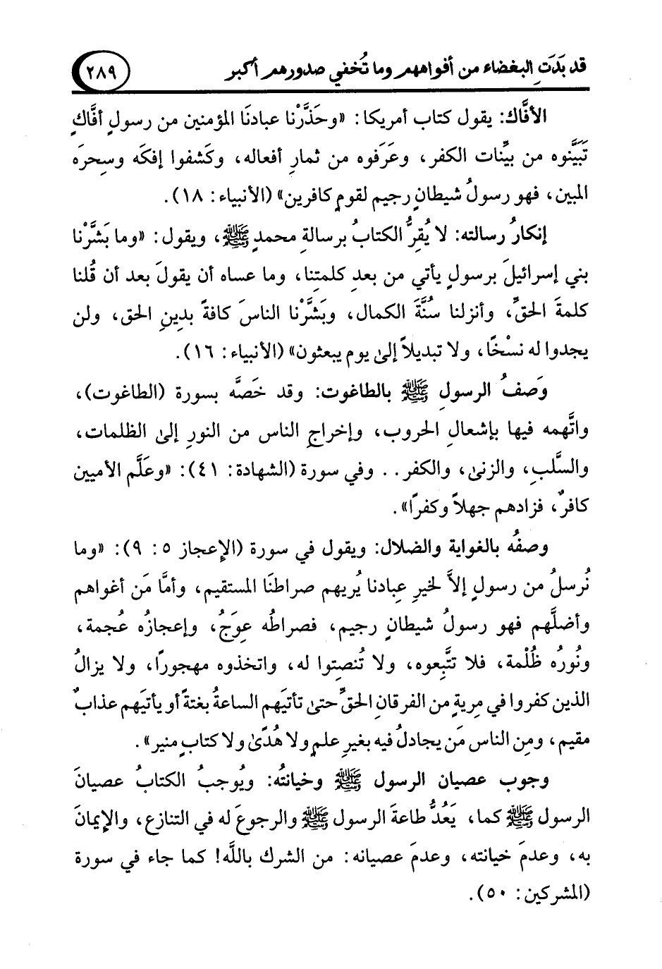 الأفَّاك: يقول كتاب أمريكا: "وحَذَّرْنا عبادنَا المؤمنين من رسولٍ أفَّاكٍ تَبَيَّنوه من بيِّنات الكفر، وعَرَفوه من ثمارِ أفعاله، وكَشفوا إفكَه وسِحرَه المبين، فهو رسولُ شيطانٍ رجيم لقومٍ كافرين" (الأنبياء: 18).