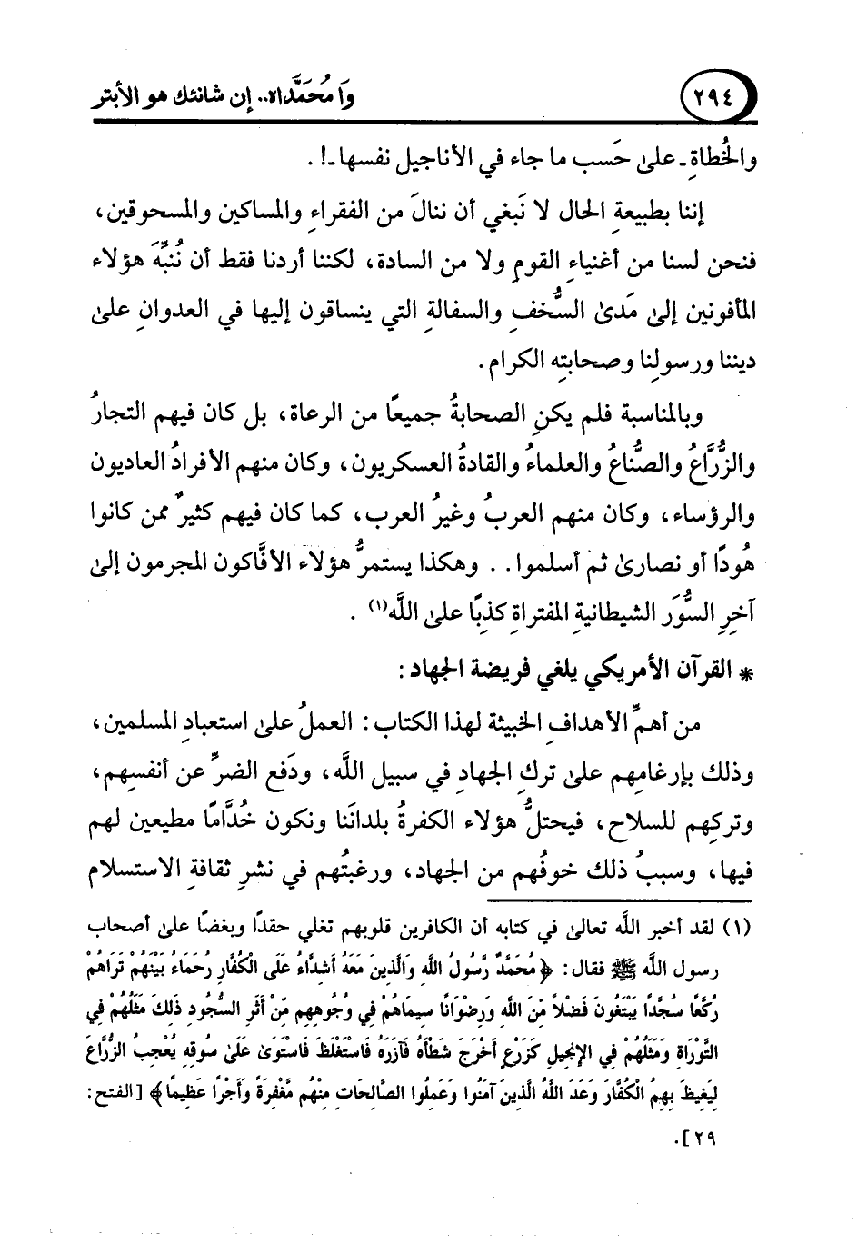 * القرَان الأمريكي يلغي فريضة الجهاد: