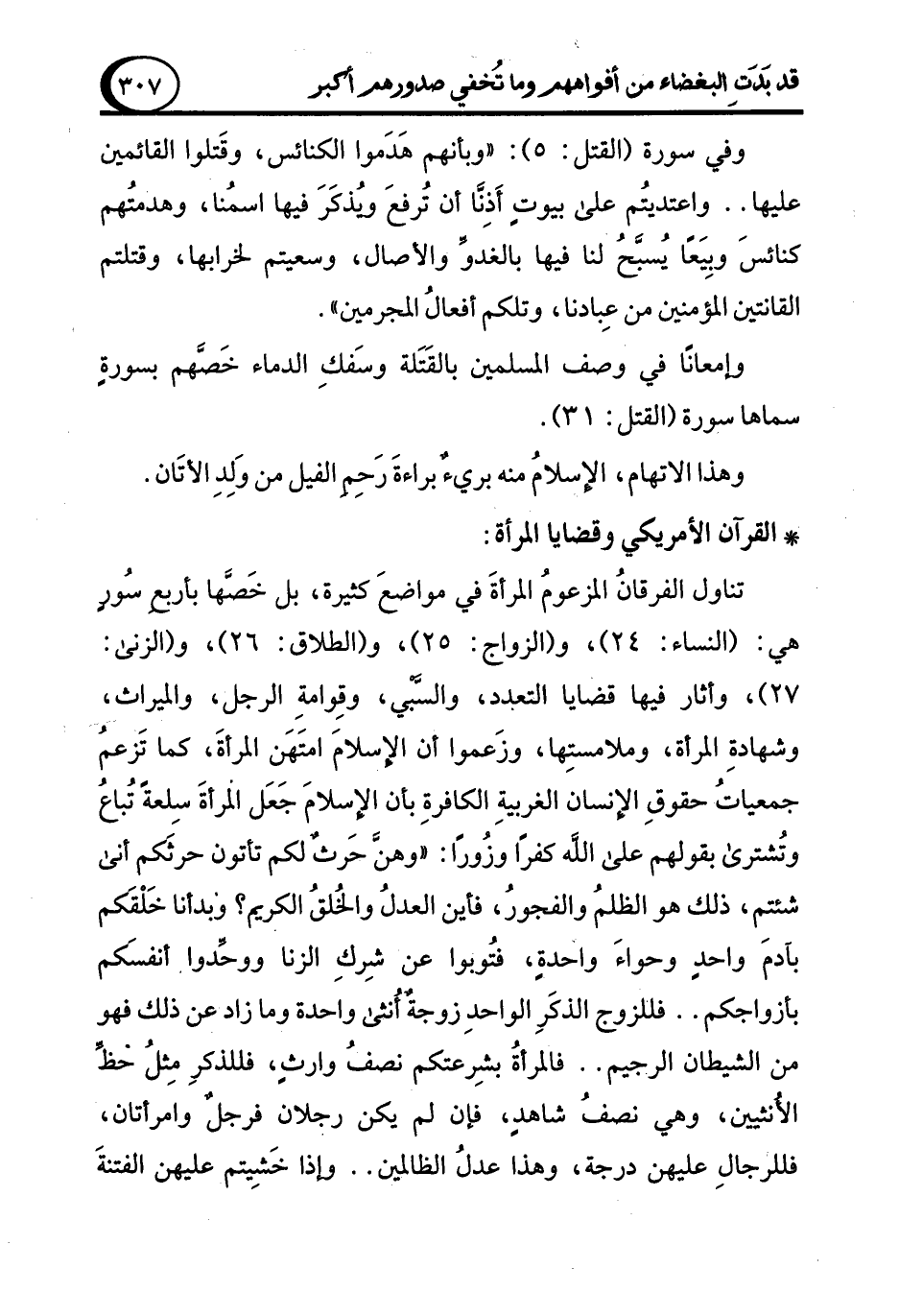 وإمعانًا في وصف المسلمين بالقَتَلة وسَفكِ الدماء خَصَّهم بسورةٍ سماها سورة (القتل: 31).