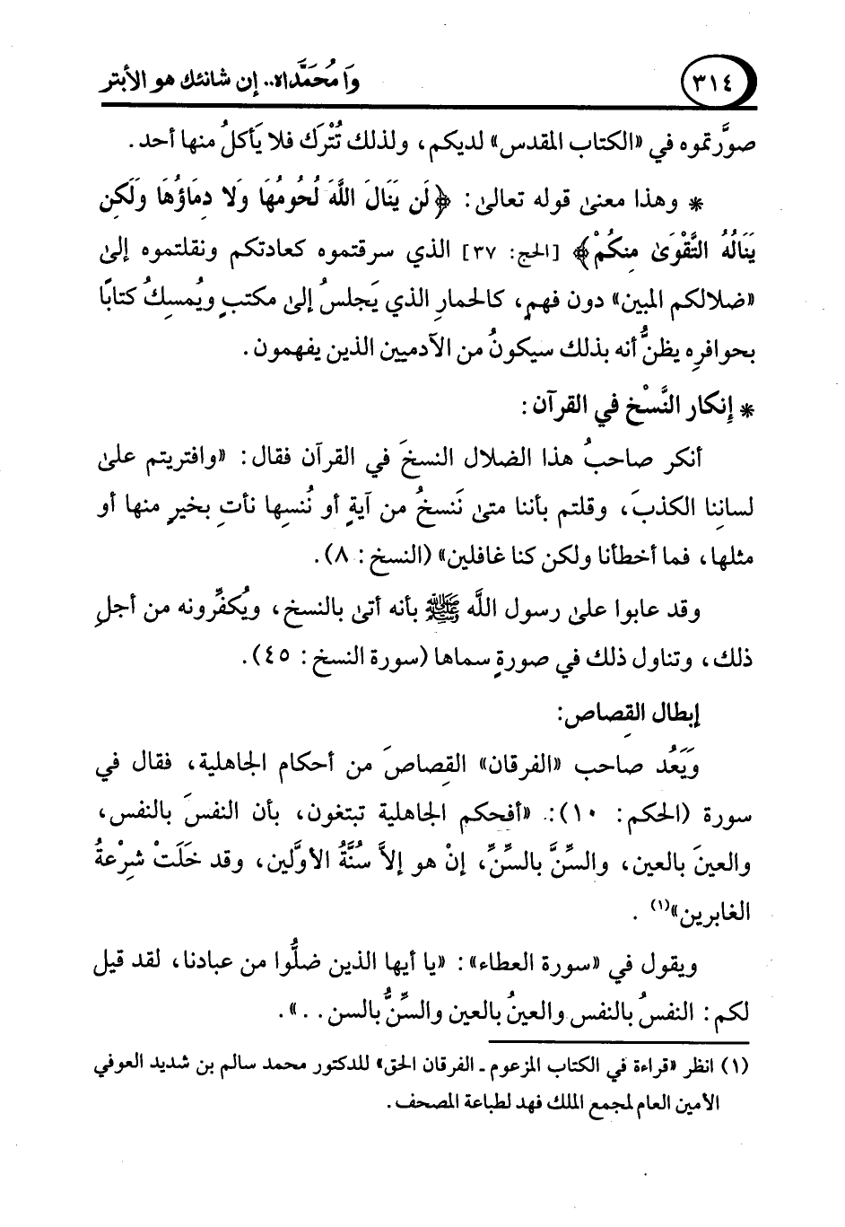 (¬1) انظر "قراءة في الكتاب المزعوم - الفرقان الحق" للدكتور محمد سالم بن شديد العوفي الأمين العام لمجمع الملك فهد لطباعة المصحف.
