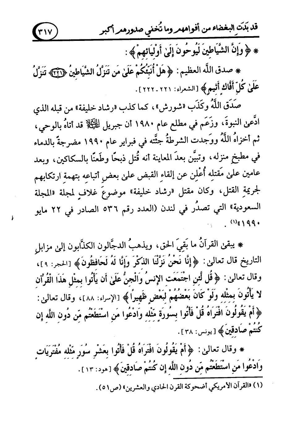 (¬1) "القرآن الأمريكي أضحوكة القرن الحادي والعشرين" (ص 51).