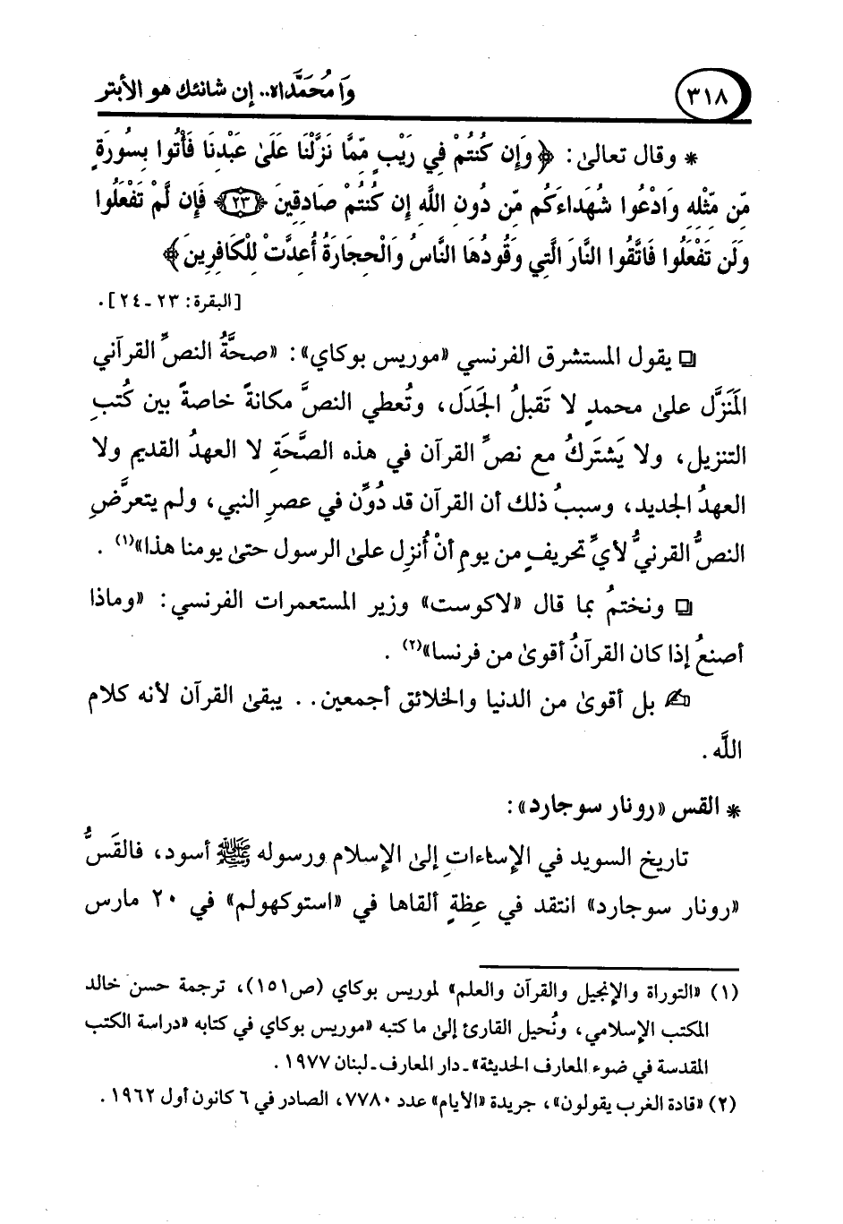 (¬1) "التوراة والإنجيل والقرآن والعلم" لموريس بوكاي (ص 151)، ترجمة حسن خالد المكتب الإسلامي، ونُحيل القارئ إلى ما كتبه "موريس بوكاي في كتابه "دراسة الكتب المقدسة في ضوء المعارف الحديثة" -دار المعارف- لبنان 1977.