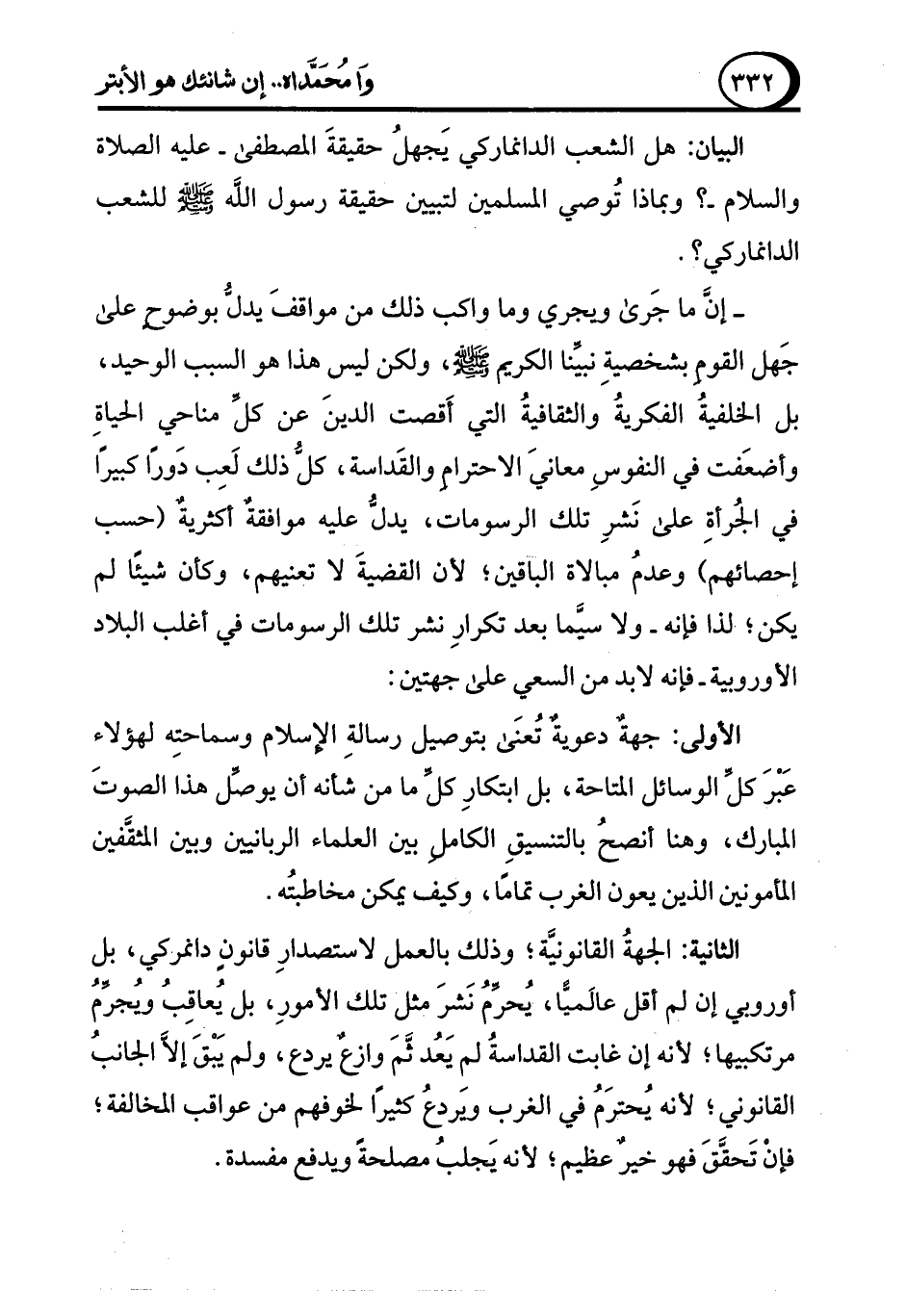 البيان: هل الشعب الدانماركي يَجهلُ حقيقةَ المصطفى -عليه الصلاة والسلام-؟ وبماذا تُوصي المسلمين لتبيين حقيقة رسول الله - صلى الله عليه وسلم - للشعب الدانماركي؟.