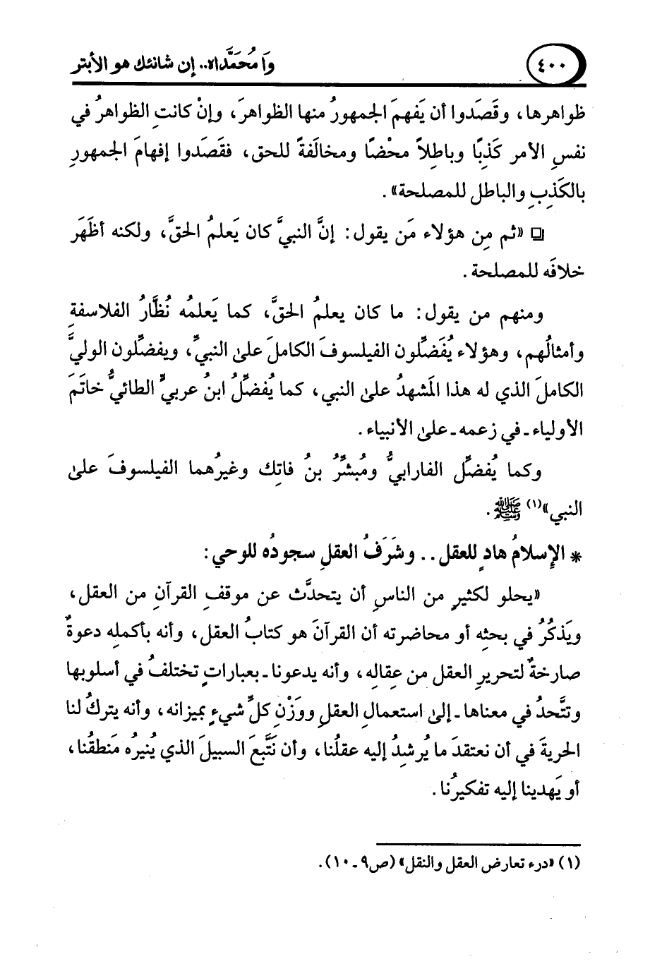 (¬1) "درء تعارض العقل والنقل" (ص 9 - 10).