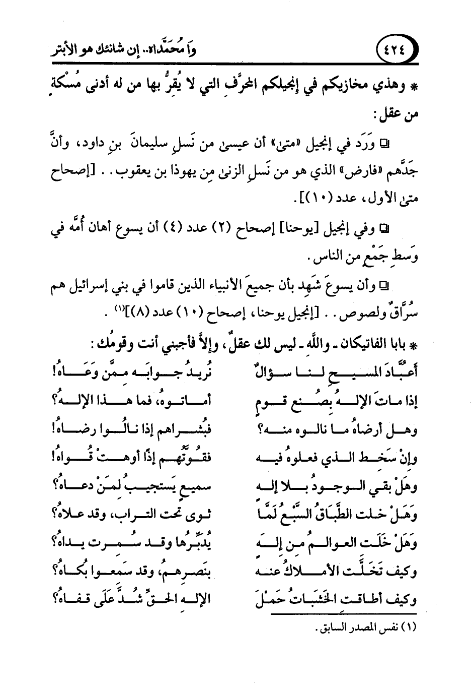 أعُبَّادَ المسيح لنا سؤالٌ ... نُريدُ جوابَه مِمَّن وَعَاهُ!
