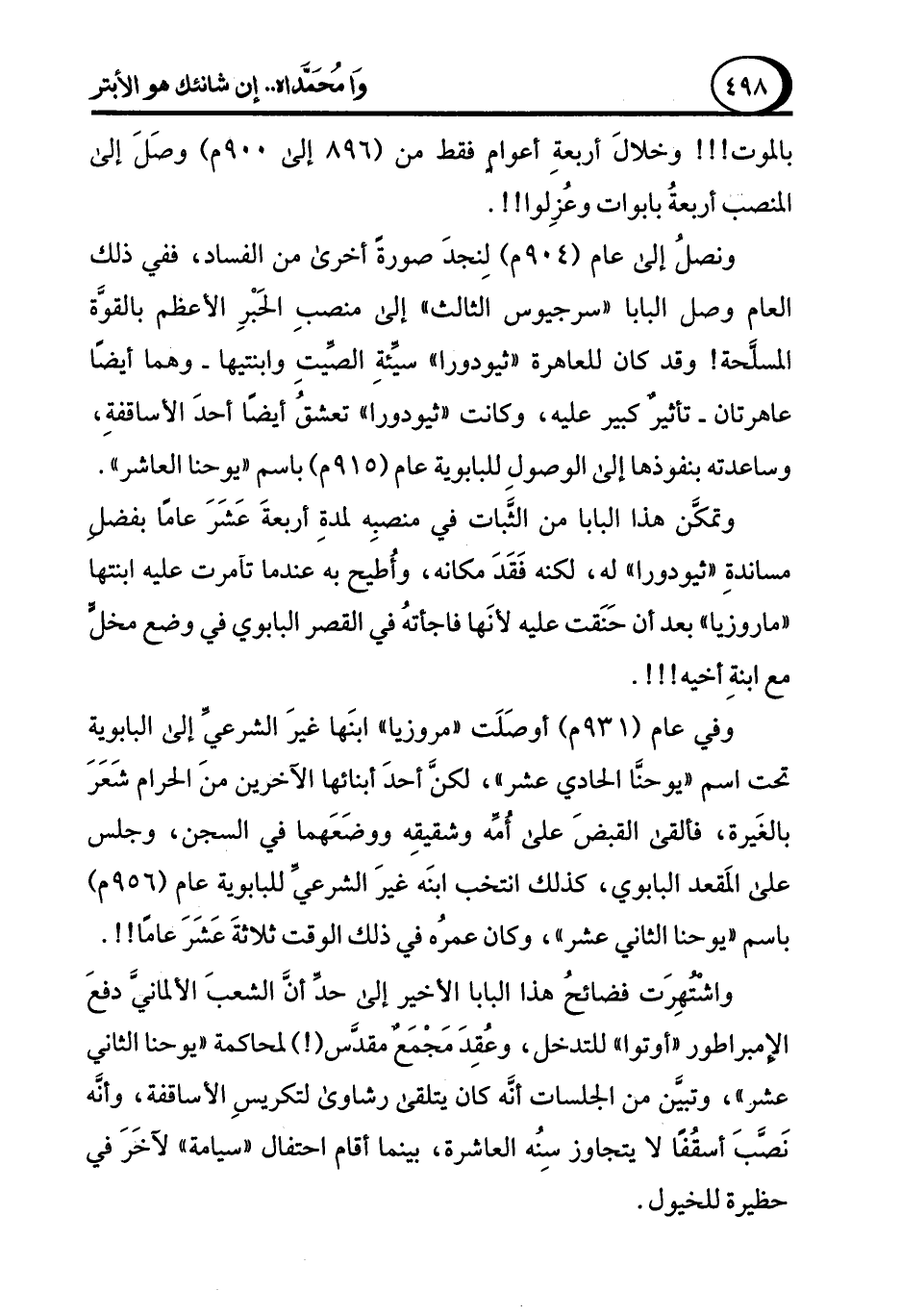 بالموت!!! وخلالَ أربعةِ أعوام فقط من (896 إلى 900 م) وصَلَ إلى المنصب أربعةُ بابوات وعُزِلوا!!.