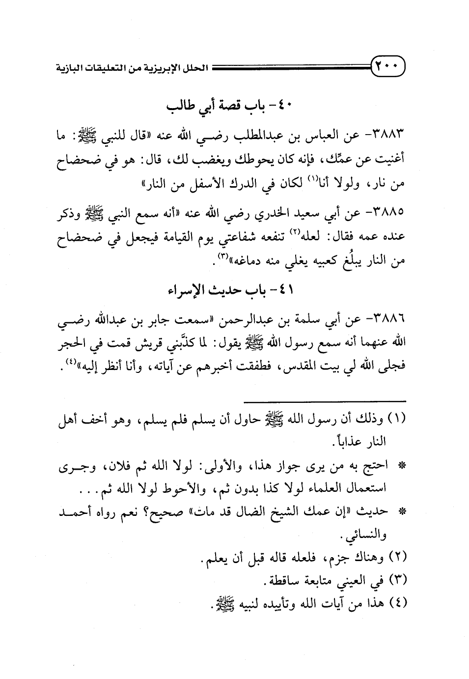 3883 - عن العباس بن عبد المطلب - رضي الله عنه - «قال للنبي - صلى الله عليه وسلم -: ما أغنيت عن عمِّك، فإنه كان يحوطك ويغضب لك، قال: هو في ضحضاح من نار، ولولا أنا (¬1) لكان في الدرك الأسفل من النار».