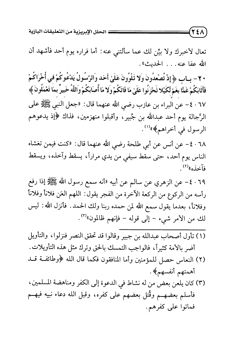كتاب الحلل الإبريزية من التعليقات البازية على صحيح البخاري (اسم الجزء: 3)