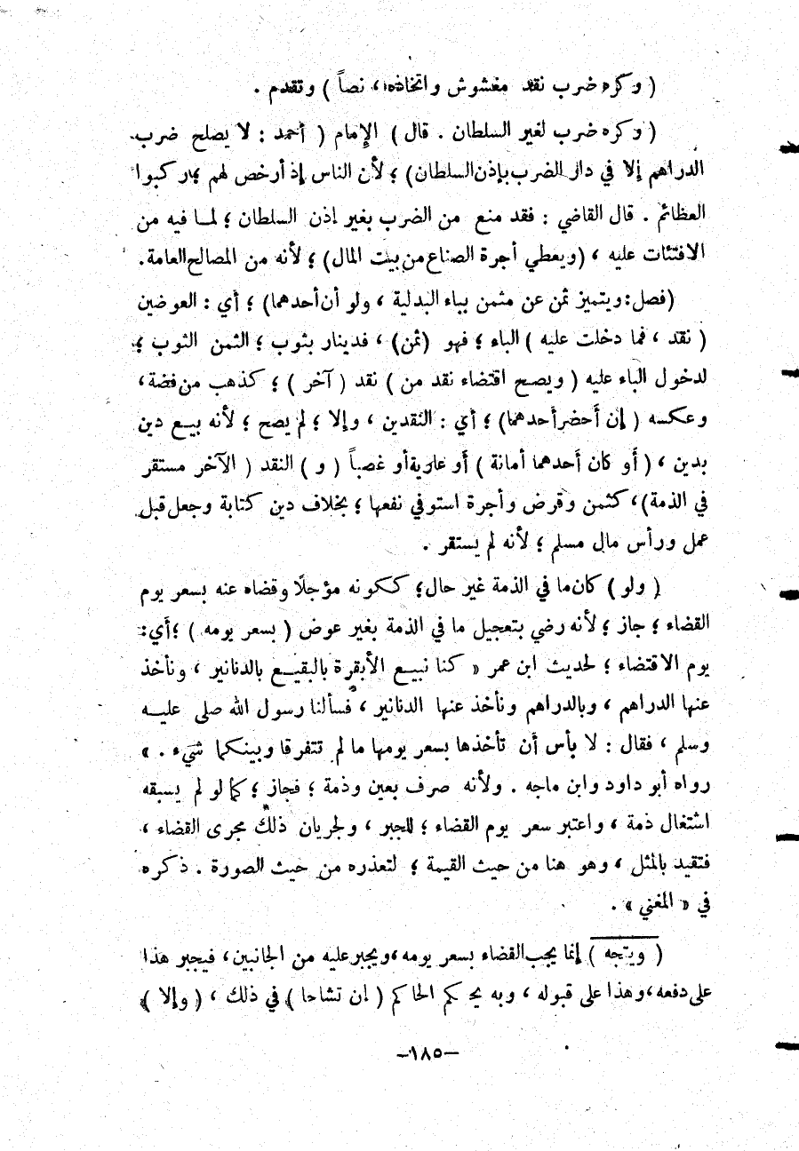 (وَلَوْ) كَانَ مَا فِي الذِّمَّةِ غَيْرَ حَالٍّ، كَكَوْنِهِ مُؤَجَّلًا وَقَضَاهُ عَنْهُ بِسِعْرِ يَوْمِ الْقَضَاءِ، جَازَ؛ لِأَنَّهُ رَضِيَ بِتَعْجِيلِ مَا فِي الذِّمَّةِ بِغَيْرِ عِوَضٍ (بِسِعْرِ يَوْمِهِ) ، أَيْ: يَوْمِ الِاقْتِضَاءِ، لِحَدِيثِ ابْنِ عُمَرَ «كُنَّا نَبِيعُ الْأَبْقِرَةَ بِالْبَقِيعِ بِالدَّنَانِيرِ، وَنَأْخُذُ عَنْهَا الدَّرَاهِمَ، وَبِالدَّرَاهِمِ وَنَأْخُذُ عَنْهَا الدَّنَانِيرَ، فَسَأَلْنَا رَسُولَ اللَّهِ - صَلَّى اللَّهُ عَلَيْهِ وَسَلَّمَ - فَقَالَ: لَا بَأْسَ أَنْ تَأْخُذَهَا بِسِعْرِ يَوْمِهَا مَا لَمْ تَتَفَرَّقَا وَبَيْنَكُمَا شَيْءٌ» . رَوَاهُ أَبُو دَاوُد وَابْنُ مَاجَهْ. وَلِأَنَّهُ صَرْفٌ بِعَيْنٍ وَذِمَّةٍ، فَجَازَ، كَمَا لَوْ لَمْ يَسْبِقْهُ اشْتِغَالُ ذِمَّةٍ، وَاعْتُبِرَ سِعْرُ يَوْمِ الْقَضَاءِ، لِلْجَبْرِ، وَلِجَرَيَانِ ذَلِكَ مَجْرَى الْقَضَاءِ فَتَقَيَّدَ بِالْمِثْلِ، وَهُوَ هُنَا مِنْ حَيْثُ الْقِيمَةِ، لِتَعَذُّرِهِ مِنْ حَيْثُ الصُّورَةِ. ذَكَرَهُ فِي " الْمُغْنِي ".