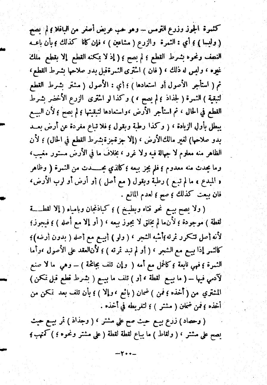 كَثَمَرَةِ الْجَوْزِ وَزَرْعِ التُّرْمُسِ - وَهُوَ حَبٌّ عَرِيضٌ أَصْغَرَ مِنْ الْبَاقِلَّا، لَمْ يَصِحَّ (وَلَيْسَا) ، أَيْ: الثَّمَرَةُ وَالزَّرْعُ (مُشَاعَيْنِ) ، فَإِنْ كَانَا كَذَلِكَ، بِأَنْ بَاعَهُ النِّصْفَ وَنَحْوَهُ بِشَرْطِ الْقَطْعِ، لَمْ يَصِحَّ، إذْ لَا يُمْكِنُهُ الْقَطْعُ إلَّا بِقَطْعِ مِلْكِ غَيْرِهِ، وَلَيْسَ لَهُ ذَلِكَ، (فَإِنْ) اشْتَرَى الثَّمَرَةَ قَبْلَ بُدُوِّ صَلَاحِهَا بِشَرْطِ الْقَطْعِ، ثُمَّ (اسْتَأْجَرَ الْأُصُولَ أَوْ اسْتَعَادَهَا) ، أَيْ: الْأُصُولَ (مُشْتَرٍ بِشَرْطِ الْقَطْعِ لِتَبْقِيَةِ) الثَّمَرَةِ (لِجِذَاذٍ، لَمْ يَصِحَّ،) وَكَذَا لَوْ اشْتَرَى الزَّرْعَ الْأَخْضَرَ بِشَرْطِ الْقَطْعِ فِي الْحَالِ، ثُمَّ اسْتَأْجَرَ الْأَرْضَ، وَاسْتَعَادَهَا لِتَبْقِيَتِهَا لَمْ يَصِحَّ؛ لِأَنَّ الْبَيْعَ يَبْطُلُ بِأَوَّلِ الزِّيَادَةِ، (وَكَذَا رَطْبَةٌ وَبُقُولٌ، فَلَا تُبَاعُ مُفْرَدَةً عَنْ أَرْضٍ بَعْدَ بُدُوِّ صَلَاحِهَا) لِغَيْرِ مَالِكِ الْأَرْضِ، (إلَّا جِزَّةً جِزَّةً بِشَرْطِ الْقَطْعِ فِي الْحَالِ) ؛ لِأَنَّ الظَّاهِرَ مِنْهُ مَعْلُومٌ لَا جَهَالَةَ فِيهِ وَلَا غَرَرَ، بِخِلَافِ مَا فِي الْأَرْضِ مَسْتُورٌ مَغِيبٌ، وَمَا يَحْدُثُ مِنْهُ مَعْدُومٌ، فَلَمْ يَجُزْ بَيْعُهُ، كَاَلَّذِي يَحْدُثُ مِنْ الثَّمَرَةِ (وَظَاهِرُ " الْمُبْدِعِ " مَا لَمْ تُبَعْ) رَطْبَةٌ وَبُقُولٌ (مَعَ أَصْلٍ) أَوْ أَرْضٍ أَوْ لِرَبِّ الْأَرْضِ، فَإِنْ بِيعَتْ كَذَلِكَ، صَحَّ، لِعَدَمِ الْمَانِعِ.