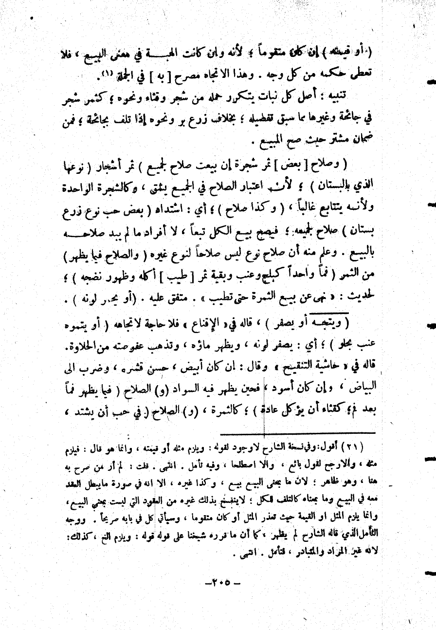 (وَصَلَاحُ [بَعْضِ] ثَمَرِ شَجَرَةٍ إنْ بِيعَتْ صَلَاحٌ لِجَمِيعِ) ثَمَرِ أَشْجَارِ (نَوْعِهَا الَّذِي بِالْبُسْتَانِ) ؛ لِأَنَّ اعْتِبَارَ الصَّلَاحِ فِي الْجَمِيعِ يَشُقُّ، وَكَالشَّجَرَةِ الْوَاحِدَةِ وَلِأَنَّهُ يَتَتَابَعُ غَالِبًا، (وَكَذَا صَلَاحُ) ، أَيْ: اشْتِدَادُ (بَعْضِ حَبِّ نَوْعِ زَرْعِ بُسْتَانٍ) صَلَاحٌ لِجَمِيعِهِ، فَيَصِحُّ بَيْعُ الْكُلِّ تَبَعًا، لَا إفْرَادُ مَا لَمْ يَبْدُ صَلَاحُهُ بِالْبَيْعِ. وَعُلِمَ مِنْهُ أَنَّ صَلَاحَ نَوْعٍ لَيْسَ صَلَاحًا لِنَوْعِ غَيْرِهِ (وَالصَّلَاحُ فِيمَا يَظْهَرُ) مِنْ الثَّمَرِ (فَمًا وَاحِدًا كَبَلَحٍ وَعِنَبٍ وَبَقِيَّةِ ثَمَرٍ [طِيبُ] أَكْلِهِ وَظُهُورُ نُضْجِهِ) ، لِحَدِيثِ: «نَهَى عَنْ بَيْعِ الثَّمَرَةِ حَتَّى تَطِيبَ» . مُتَّفَقٌ عَلَيْهِ. (أَوْ يَحْمَرَّ لَوْنُهُ) .