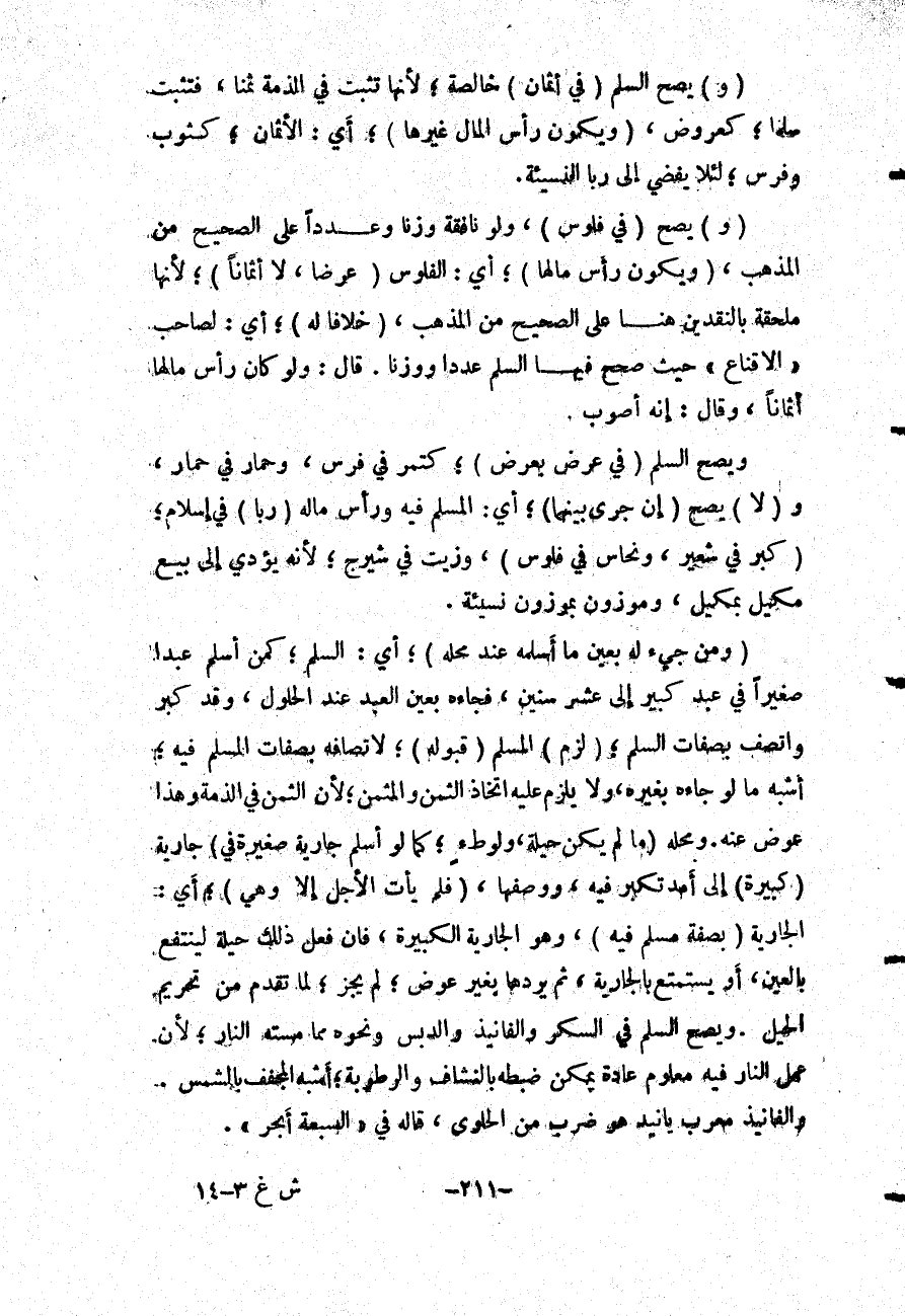 (وَ) يَصِحُّ (فِي فُلُوسٍ) ، وَلَوْ نَافِقَةٍ وَزْنًا وَعَدَدًا عَلَى الصَّحِيحِ مِنْ الْمَذْهَبِ، (وَيَكُونُ رَأْسُ مَالِهَا) أَيْ: الْفُلُوسِ (عَرْضًا، لَا أَثْمَانًا) ؛ لِأَنَّهَا مُلْحَقَةٌ بِالنَّقْدَيْنِ هُنَا عَلَى الصَّحِيحِ مِنْ الْمَذْهَبِ، (خِلَافًا لَهُ) ؛ أَيْ: لِصَاحِبِ " الْإِقْنَاعِ " حَيْثُ صَحَّحَ فِيهَا السَّلَمَ عَدَدًا وَوَزْنًا. قَالَ: وَلَوْ كَانَ رَأْسُ مَالِهَا أَثْمَانًا، وَقَالَ: إنَّهُ أَصْوَبُ.