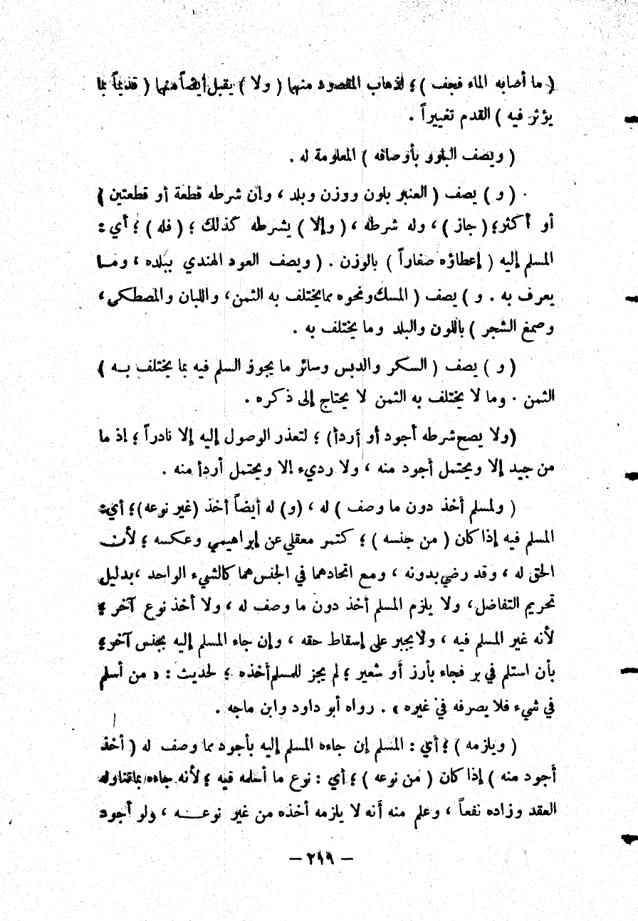 (وَ) يَصِفُ (السُّكَّرَ وَالدِّبْسَ وَسَائِرَ مَا يَجُوزُ السَّلَمُ فِيهِ بِمَا يَخْتَلِفُ بِهِ) الثَّمَنُ. وَمَا لَا يَخْتَلِفُ بِهِ الثَّمَنُ لَا يُحْتَاجُ إلَى ذِكْرِهِ (وَلَا يَصِحُّ شَرْطُهُ أَجْوَدَ أَوْ أَرْدَأَ) ؛ لِتَعَذُّرِ الْوُصُولِ إلَيْهِ إلَّا نَادِرًا؛ إذْ مَا مِنْ جَيِّدٍ إلَّا وَيُحْتَمَلُ أَجْوَدُ مِنْهُ وَلَا رَدِيءٍ إلَّا وَيُحْتَمَلُ أَرْدَأُ مِنْهُ.