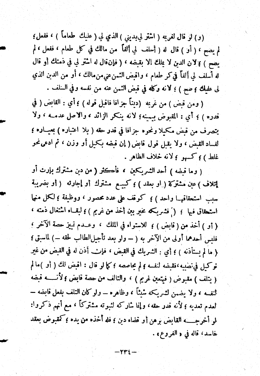 (وَمَا قَبَضَهُ) أَحَدُ الشَّرِيكَيْنِ، فَأَكْثَرُ (مِنْ دَيْنٍ مُشْتَرَكٍ بِإِرْثٍ أَوْ إتْلَافِ) عَيْنٍ مُشْتَرَكَةٍ (أَوْ بِعَقْدٍ) ؛ كَبَيْعِ مُشْتَرَكٍ أَوْ إجَارَتِهِ (أَوْ بِضَرِيبَةٍ سَبَبُ اسْتِحْقَاقِهَا وَاحِدٌ) ؛ كَوَقْفٍ عَلَى عَدَدٍ مَحْصُورٍ، وَوَظِيفَةٍ لِكُلِّ مِنْهُمَا اسْتِحْقَاقٌ فِيهَا؛ (فَشَرِيكُهُ مُخَيَّرٌ بَيْنَ أَخْذٍ مِنْ غَرِيمٍ) ؛ لِبَقَاءِ اشْتِغَالِ ذِمَّتِهِ، (أَوْ) أَخْذٍ مِنْ (قَابِضٍ) ؛ لِلِاسْتِوَاءِ فِي الْمِلْكِ، وَعَدَمِ تَمْيِيزِ حِصَّةِ الْآخَرِ، فَلَيْسَ أَحَدُهُمَا أَوْلَى مِنْ الْآخَرِ بِهِ (- وَلَوْ بَعْدَ تَأْجِيلِ الطَّالِبِ لِحَقِّهِ -) لِمَا سَبَقَ؛ (مَا لَمْ يَسْتَأْذِنْهُ) ؛ أَيْ: الشَّرِيكُ فِي الْقَبْضِ، فَإِنْ أَذِنَ لَهُ فِي الْقَبْضِ مِنْ غَيْرِ تَوْكِيلٍ فِي: نَصِيبِهِ، فَقَبَضَهُ لِنَفْسِهِ؛ لَمْ يُحَاصِصْهُ؛ كَمَا لَوْ قَالَ: اقْبِضْ لَكَ (أَوْ) مَا لَمْ (يَتْلَفْ) مَقْبُوضٌ (فَيَتَعَيَّنُ غَرِيمٌ) ، وَالتَّالِفُ مِنْ حِصَّةِ قَابِضٍ؛ لِأَنَّهُ قَبَضَهُ لِنَفْسِهِ، وَلَا يَضْمَنُ لِشَرِيكِهِ شَيْئًا، وَظَاهِرُهُ - وَلَوْ كَانَ التَّلَفُ بِفِعْلِ قَابِضِهِ - لِعَدَمِ تَعَدِّيهِ؛ لِأَنَّهُ قَدْرُ حَقِّهِ، وَإِنَّمَا شَارَكَهُ لِثُبُوتِهِ مُشْتَرَكًا، مَعَ أَنَّهُمْ ذَكَرُوا: لَوْ أَخْرَجَهُ الْقَابِضُ بِرَهْنٍ أَوْ قَضَاءِ دَيْنٍ؛ فَلَهُ أَخْذُهُ مِنْ يَدِهِ؛ كَمَقْبُوضٍ بِعَقْدٍ فَاسِدٍ، قَالَهُ فِي " الْفُرُوعِ ".