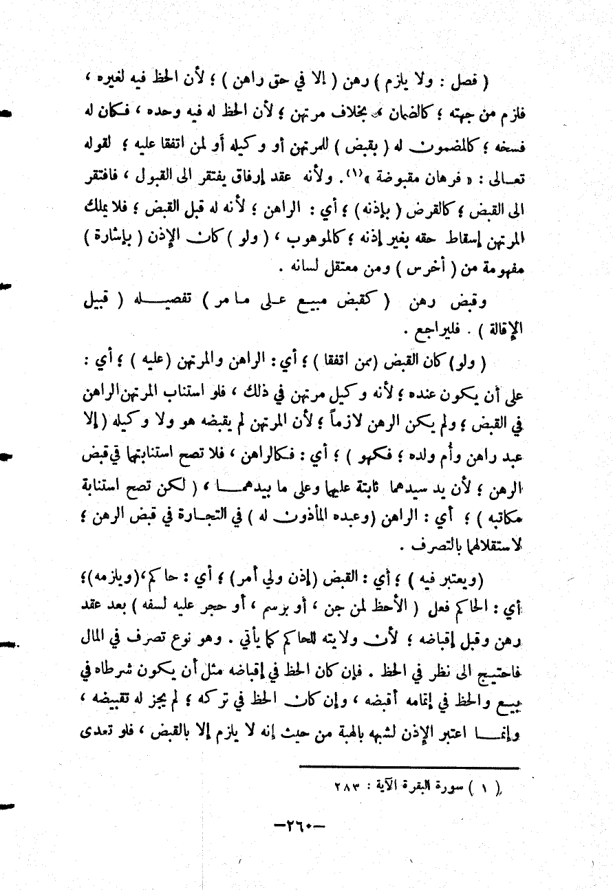 (فَصْلٌ: وَلَا يَلْزَمُ) رَهْنٌ (إلَّا فِي حَقِّ رَاهِنٍ) ؛ لِأَنَّ الْحَظَّ فِيهِ لِغَيْرِهِ، فَلَزِمَ مِنْ جِهَتِهِ؛ كَالضَّمَانِ، بِخِلَافِ مُرْتَهَنٍ؛ لِأَنَّ الْحَظَّ لَهُ فِيهِ وَحْدَهُ، فَكَانَ لَهُ فَسْخُهُ؛ كَالْمَضْمُونِ لَهُ (بِقَبْضٍ) لِلْمُرْتَهِنِ أَوْ وَكِيلِهِ أَوْ لِمَنْ اتَّفَقَا عَلَيْهِ؛ لِقَوْلِهِ تَعَالَى: {فَرِهَانٌ مَقْبُوضَةٌ} [البقرة: 283] . وَلِأَنَّهُ عَقْدُ إرْفَاقٍ يَفْتَقِرُ إلَى الْقَبُولِ، فَافْتَقَرَ إلَى الْقَبْضِ؛ كَالْقَرْضِ (بِإِذْنِهِ) ؛ أَيْ: الرَّاهِنِ؛ لِأَنَّهُ لَهُ قَبْلَ الْقَبْضِ؛ فَلَا يَمْلِكُ الْمُرْتَهِنُ إسْقَاطَ حَقِّهِ بِغَيْرِ إذْنِهِ؛ كَالْمَوْهُوبِ، (وَلَوْ) كَانَ الْإِذْنُ (بِإِشَارَةٍ) مَفْهُومَةٍ مِنْ (أَخْرَسَ) وَمِنْ مُعْتَقَلٍ لِسَانُهُ. وَقَبْضُ رَهْنٍ (كَقَبْضِ مَبِيعٍ عَلَى مَا مَرَّ) تَفْصِيلُهُ (قُبَيْلَ الْإِقَالَةِ) فَلْيُرَاجَعْ.