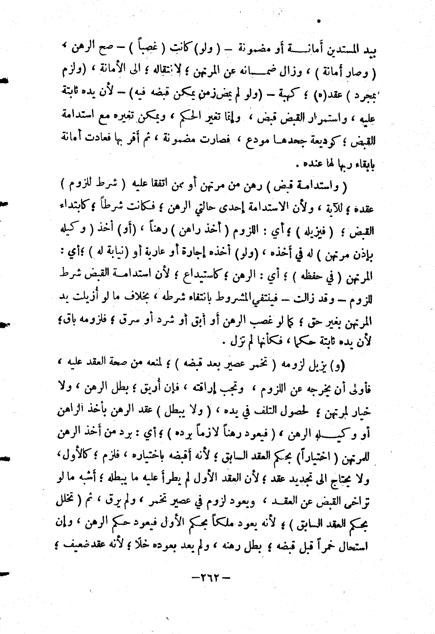 بِيَدِ الْمُسْتَدِينِ أَمَانَةً أَوْ مَضْمُونَةً - (وَلَوْ) كَانَتْ (غَصْبًا) - صَحَّ الرَّهْنُ، (وَصَارَ أَمَانَةً) ، وَزَالَ ضَمَانُهُ عَنْ الْمُرْتَهِنِ؛ لِانْتِقَالِهِ؛ إلَى الْأَمَانَةِ، (وَلَزِمَ بِمُجَرَّدِ) عَقْدِ (هـ) ؛ كَهِبَةٍ - (وَلَوْ لَمْ يَمْضِ زَمَنٌ يُمْكِنُ قَبْضُهُ فِيهِ) - لِأَنَّ يَدَهُ ثَابِتَةٌ عَلَيْهِ وَاسْتِمْرَارَ الْقَبْضِ قَبْضٌ، وَإِنَّمَا تَغَيَّرَ الْحُكْمُ، وَيُمْكِنُ تَغَيُّرُهُ مَعَ اسْتِدَامَةِ الْقَبْضِ؛ كَوَدِيعَةٍ جَحَدَهَا مُودَعٌ، فَصَارَتْ مَضْمُونَةً، ثُمَّ أَقَرَّ بِهَا فَعَادَتْ أَمَانَةً بِإِبْقَاءِ رَبِّهَا لَهَا عِنْدَهُ.