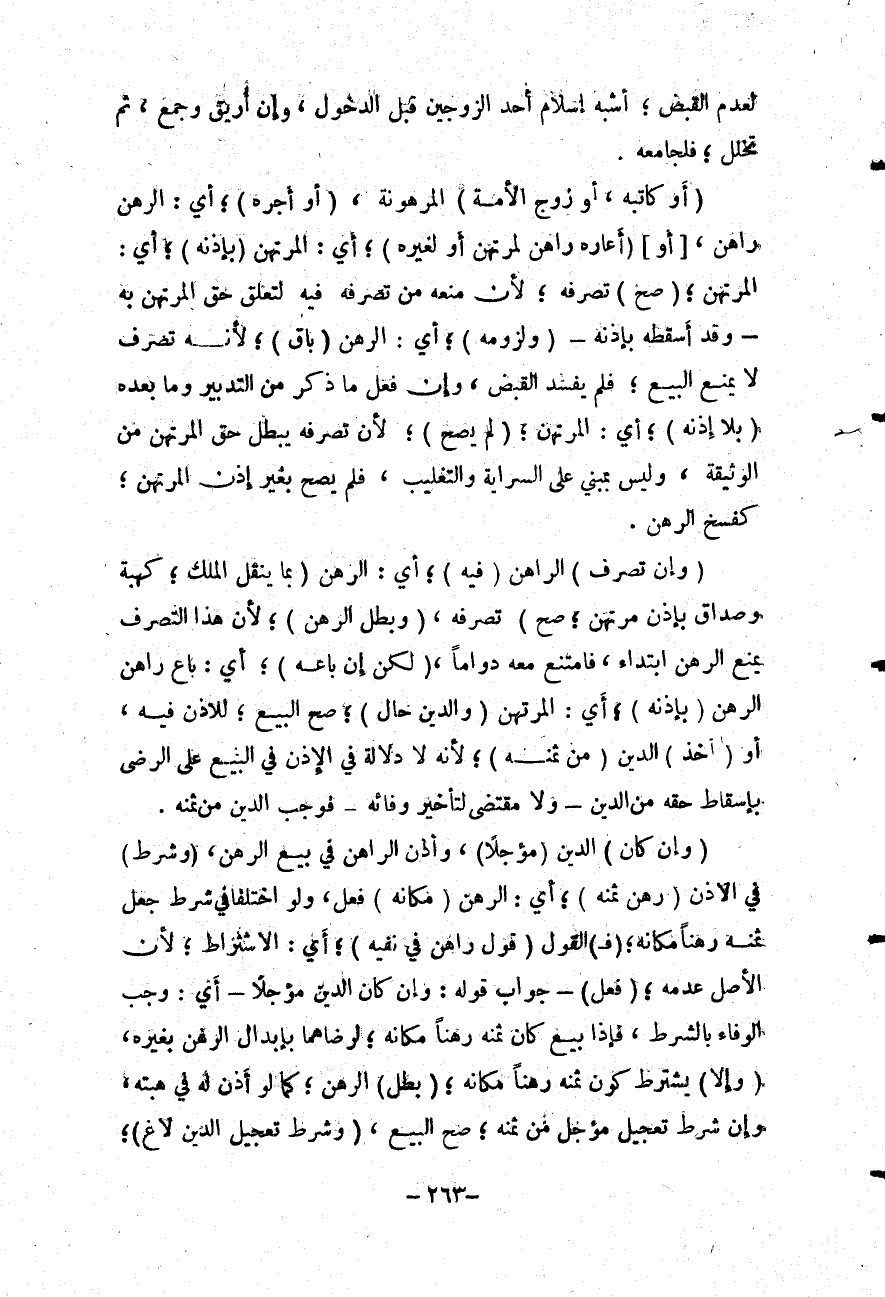 (وَإِنْ تَصَرَّفَ) الرَّاهِنُ (فِيهِ) ؛ أَيْ: الرَّهْنِ (بِمَا يَنْقُلُ الْمِلْكَ؛ كَهِبَةٍ وَصَدَاقٍ بِإِذْنِ مُرْتَهِنٍ؛ صَحَّ) تَصَرُّفُهُ، (وَبَطَلَ الرَّهْنُ) لِأَنَّ هَذَا التَّصَرُّفَ يَمْنَعُ الرَّهْنَ ابْتِدَاءً، فَامْتَنَعَ مَعَهُ دَوَامًا (لَكِنْ إنْ بَاعَهُ) ؛ أَيْ: بَاعَ رَاهِنٌ الرَّهْنَ (بِإِذْنِهِ) ؛ أَيْ: الْمُرْتَهِنِ (وَالدَّيْنُ حَالٌّ) ؛ صَحَّ الْبَيْعُ؛ لِلْإِذْنِ فِيهِ، أَوْ (أَخَذَ) الدَّيْنَ (مِنْ ثَمَنِهِ) ؛ لِأَنَّهُ لَا دَلَالَةَ فِي الْإِذْنِ فِي الْبَيْعِ عَلَى الرِّضَى بِإِسْقَاطِ حَقِّهِ مِنْ الدَّيْنِ - وَلَا مُقْتَضَيْ لِتَأْخِيرِ وَفَائِهِ - فَوَجَبَ الدَّيْنُ مِنْ ثَمَنِهِ. (وَإِنْ كَانَ) الدَّيْنُ (مُؤَجَّلًا) ، وَأَذِنَ الرَّاهِنُ فِي بَيْعِ الرَّهْنِ، (وَشَرَطَ) فِي الْإِذْنِ (رَهْنَ ثَمَنِهِ) ؛ أَيْ: الرَّهْنِ (مَكَانَهُ) فَعَلَ، وَلَوْ اخْتَلَفَا فِي شَرْطٍ جُعِلَ ثَمَنُهُ رَهْنًا مَكَانَهُ؛ (فَ) الْقَوْلُ (قَوْلُ رَاهِنٍ فِي نَفْيِهِ) ؛ أَيْ: الِاشْتِرَاطِ؛ لِأَنَّ الْأَصْلَ عَدَمُهُ؛ (فَعَلَ) - جَوَابُ قَوْلِهِ: وَإِنْ كَانَ الدَّيْنُ مُؤَجَّلًا - أَيْ: وَجَبَ الْوَفَاءُ بِالشَّرْطِ، فَإِذَا بِيعَ كَانَ ثَمَنُهُ رَهْنًا مَكَانَهُ؛ لِرِضَاهُمَا بِإِبْدَالِ الرَّهْنِ بِغَيْرِهِ، (وَإِلَّا) يُشْتَرَطْ كَوْنُ ثَمَنِهِ رَهْنًا مَكَانَهُ؛ (بَطَلَ) الرَّهْنُ؛ كَمَا لَوْ أَذِنَ لَهُ فِي هِبَتِهِ، وَإِنْ شَرَطَ تَعْجِيلَ مُؤَجَّلٍ مِنْ ثَمَنِهِ؛ صَحَّ الْبَيْعُ، (وَشَرْطُ تَعْجِيلِ الدَّيْنِ لَاغٍ) ؛