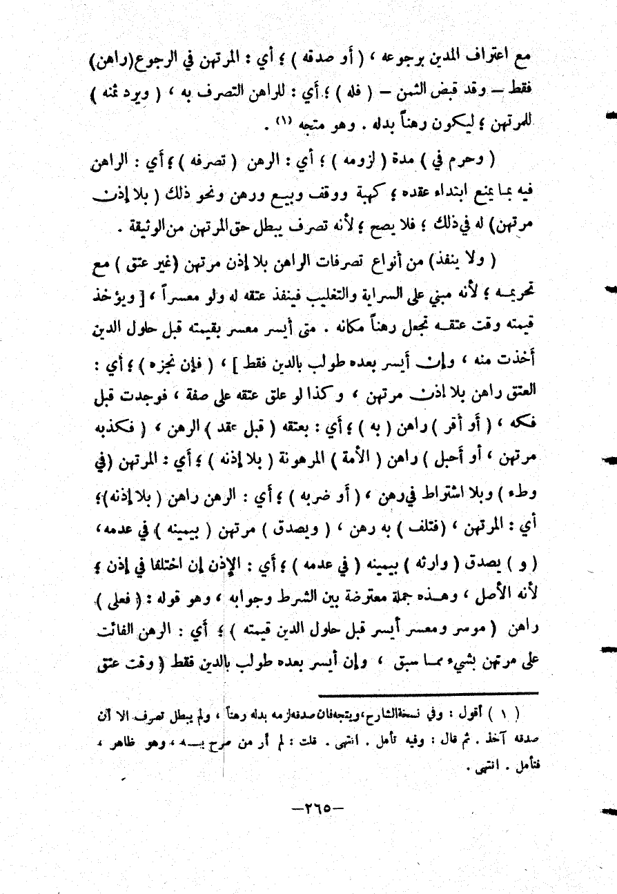 (وَحَرُمَ فِي) مُدَّةِ (لُزُومِهِ) ؛ أَيْ: الرَّهْنِ (تَصَرُّفُهُ) ؛ أَيْ: الرَّاهِنِ فِيهِ بِمَا يَمْنَعُ ابْتِدَاءَ عَقْدِهِ؛ كَهِبَةٍ وَوَقْفٍ وَبَيْعٍ وَرَهْنٍ وَنَحْوِ ذَلِكَ (بِلَا إذْنِ مُرْتَهِنٍ) لَهُ فِي ذَلِكَ؛ فَلَا يَصِحُّ؛ لِأَنَّهُ تَصَرُّفٌ يُبْطِلُ حَقَّ الْمُرْتَهِنِ مِنْ الْوَثِيقَةِ.