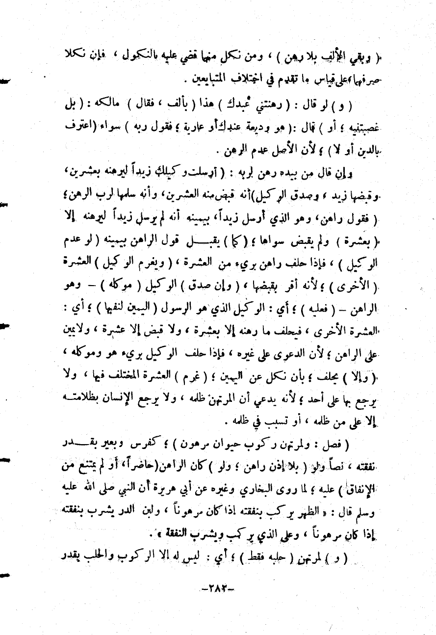 (فَصْلٌ: وَلِمُرْتَهِنٍ رُكُوبُ حَيَوَانٍ مَرْهُونٍ) ؛ كَفَرَسٍ وَبَعِيرٍ بِقَدْرِ نَفَقَتِهِ، نَصًّا وَلَوْ (بِلَا إذْنِ رَاهِنٍ؛ وَلَوْ) كَانَ الرَّاهِنُ (حَاضِرًا، أَوْ لَمْ يَمْتَنِعْ مِنْ الْإِنْفَاقِ) عَلَيْهِ؛ لِمَا رَوَى الْبُخَارِيُّ وَغَيْرُهُ عَنْ أَبِي هُرَيْرَةَ أَنَّ النَّبِيَّ - صَلَّى اللَّهُ عَلَيْهِ وَسَلَّمَ - قَالَ: «الظَّهْرُ يُرْكَبُ بِنَفَقَتِهِ إذَا كَانَ مَرْهُونًا، وَلَبَنُ الدَّرِّ يُشْرَبُ بِنَفَقَتِهِ إذَا كَانَ مَرْهُونًا، وَعَلَى الَّذِي يَرْكَبُ وَيَشْرَبُ النَّفَقَةُ» . (وَ) لِمُرْتَهِنٍ (حَلْبُهُ فَقَطْ) ؛ أَيْ: لَيْسَ لَهُ إلَّا الرُّكُوبُ وَالْحَلْبُ بِقَدْرِ
