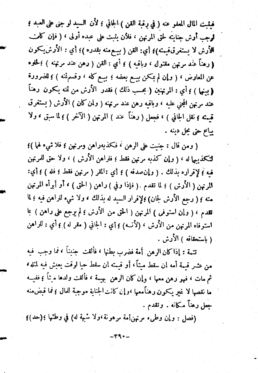 فَيَثْبُتُ الْمَالُ الْمَعْفُوُّ عَنْهُ (فِي رَقَبَةِ الْقَنِّ) الْجَانِي؛ لِأَنَّ السَّيِّدَ لَوْ جَنَى عَلَى الْعَبْدِ؛ لَوَجَبَ أَرْشُ جِنَايَتِهِ لِحَقِّ الْمُرْتَهِنِ، فَلَأَنْ يَثْبُتَ عَلَى عَبْدِهِ أَوْلَى، (فَإِنْ كَانَ الْأَرْشُ لَا يَسْتَغْرِقُ قِيمَتَهُ) ؛ أَيْ: الْقَنِّ (بِيعَ مِنْهُ بِقَدْرِهِ) ؛ أَيْ: الْأَرْشِ يَكُونُ (رَهْنًا عِنْدَ مُرْتَهِنٍ مَقْتُولٍ، وَبَاقِيهِ) ؛ أَيْ: الْقَنِّ (رَهْنٌ عِنْدَ مُرْتَهِنِهِ) ؛ لِخُلُوِّهِ عَنْ الْمُعَارِضِ، (وَإِنْ لَمْ يُمْكِنْ بَيْعُ بَعْضِهِ؛ بِيعَ كُلُّهُ، وَقُسِّمَ ثَمَنُهُ) ؛ لِلضَّرُورَةِ (بَيْنَهُمَا) ؛ أَيْ: الْمُرْتَهِنَيْنِ (بِحَسَبِ ذَلِكَ) فَقَدْرُ الْأَرْشِ مِنْ ثَمَنِهِ يَكُونُ رَهْنًا عِنْدَ مُرْتَهِنِ الْمَجْنِيِّ عَلَيْهِ، وَبَاقِيهِ رَهْنٌ عِنْدَ مُرْتَهِنِهِ (وَإِنْ كَانَ) الْأَرْشُ (يَسْتَغْرِقُ قِيمَتَهُ؛ نُقِلَ الْجَانِي) ، فَجُعِلَ (رَهْنًا عَنْهُ) الْمُرْتَهِنُ (الْآخَرُ) ؛ لِمَا سَبَقَ، وَلَا يُبَاعُ حَتَّى يَحِلَّ دَيْنُهُ.