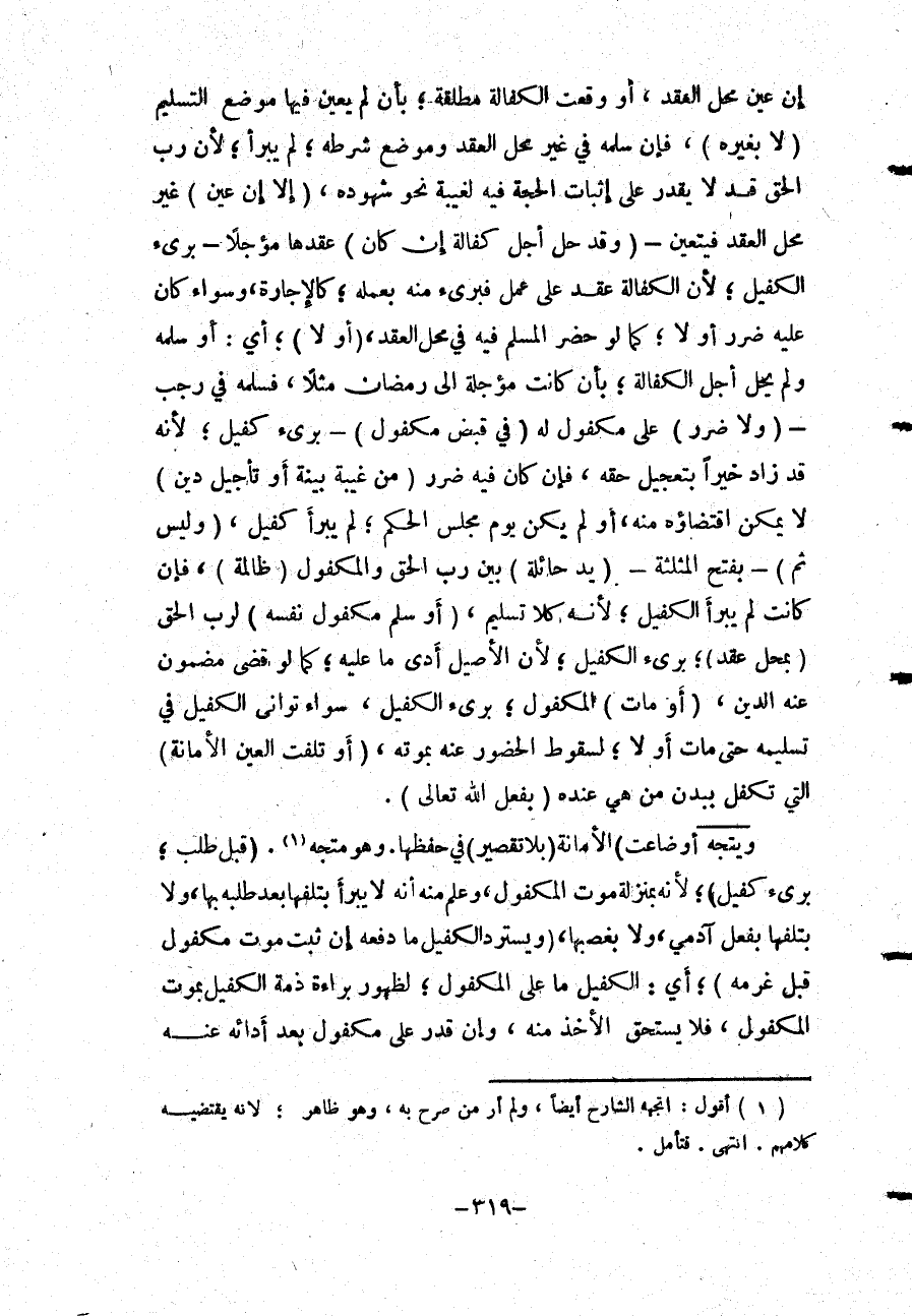 إنْ عَيَّنَ مَحَلَّ الْعَقْدِ، أَوْ وَقَعَتْ الْكَفَالَةُ مُطْلَقَةً؛ بِأَنْ لَمْ يُعَيِّنْ فِيهَا مَوْضِعَ التَّسْلِيمِ (لَا بِغَيْرِهِ) ، فَإِنْ سَلَّمَهُ فِي غَيْرِ مَحَلِّ الْعَقْدِ وَمَوْضِعِ شَرْطِهِ؛ لَمْ يَبْرَأْ؛ لِأَنَّ رَبَّ الْحَقِّ قَدْ لَا يَقْدِرُ عَلَى إثْبَاتِ الْحُجَّةِ فِيهِ لِغَيْبَةِ نَحْوِ شُهُودِهِ، (إلَّا إنْ عَيَّنَ) غَيْرَ مَحَلِّ الْعَقْدِ فَيَتَعَيَّنُ - (وَقَدْ حَلَّ أَجَلُ كَفَالَةٍ إنْ كَانَ) عَقْدُهَا مُؤَجَّلًا - بَرِئَ الْكَفِيلُ؛ لِأَنَّ الْكَفَالَةَ عَقْدٌ عَلَى عَمَلٍ فَبَرِئَ مِنْهُ بِعَمَلِهِ؛ كَالْإِجَارَةِ، وَسَوَاءٌ كَانَ عَلَيْهِ ضَرَرٌ أَوْ لَا؛ كَمَا لَوْ حَضَرَ الْمُسَلَّمُ فِيهِ فِي مَحَلِّ الْعَقْدِ، (أَوْ لَا) ؛ أَيْ: أَوْ سَلَّمَهُ وَلَمْ يَحِلَّ أَجَلُ الْكَفَالَةِ؛ بِأَنْ كَانَتْ مُؤَجَّلَةً إلَى رَمَضَانَ مَثَلًا، فَسَلَّمَهُ فِي رَجَبٍ - (وَلَا ضَرَرَ) عَلَى مَكْفُولٍ لَهُ (فِي قَبْضِ مَكْفُولٍ) - بَرِئَ كَفِيلٌ؛ لِأَنَّهُ قَدْ زَادَ خَيْرًا بِتَعْجِيلِ حَقِّهِ، فَإِنْ كَانَ فِيهِ ضَرَرٌ (مِنْ غَيْبَةِ بَيِّنَةٍ أَوْ تَأْجِيلِ دَيْنٍ) لَا يُمْكِنُ اقْتِضَاؤُهُ مِنْهُ، أَوْ لَمْ يَكُنْ يَوْمَ مَجْلِسِ الْحُكْمِ؛ لَمْ يَبْرَأْ كَفِيلٌ، (وَلَيْسَ ثَمَّ) - بِفَتْحِ الْمُثَلَّثَةِ - (يَدٌ حَائِلَةٌ) بَيْنَ رَبِّ الْحَقِّ وَالْمَكْفُولِ (ظَالِمَةً) ، فَإِنْ كَانَتْ لَمْ يَبْرَأْ الْكَفِيلُ؛ لِأَنَّهُ كَلَا تَسْلِيمٍ، (أَوْ سَلَّمَ مَكْفُولٌ نَفْسَهُ) لِرَبِّ الْحَقِّ (بِمَحَلِّ عَقْدٍ) ؛ بَرِئَ الْكَفِيلُ؛ لِأَنَّ الْأَصِيلَ أَدَّى مَا عَلَيْهِ، كَمَا لَوْ قَضَى مَضْمُونٌ عَنْهُ الدَّيْنَ، (أَوْ مَاتَ) الْمَكْفُولُ؛ بَرِئَ الْكَفِيلُ، سَوَاءٌ تَوَانَى الْكَفِيلُ فِي تَسْلِيمِهِ حَتَّى مَاتَ أَوْ لَا؛ لِسُقُوطِ الْحُضُورِ عَنْهُ بِمَوْتِهِ، (أَوْ تَلِفَتْ الْعَيْنُ الْأَمَانَةُ) الَّتِي تَكَفَّلَ بِبَدَنِ مَنْ هِيَ عِنْدَهُ (بِفِعْلِ اللَّهِ تَعَالَى) .