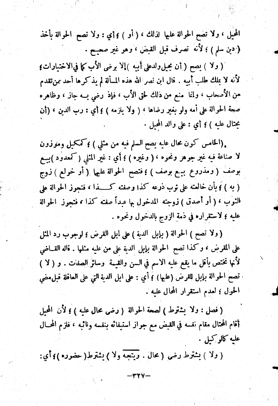 الْمُحِيلِ، وَلَا تَصِحُّ الْحَوَالَةُ عَلَيْهَا لِذَلِكَ، (أَوْ) ؛ أَيْ: وَلَا تَصِحُّ الْحَوَالَةُ بِأَخْذِ (دَيْنِ سَلَمٍ) ؛ لِأَنَّهُ تَصَرُّفٌ قَبْلَ الْقَبْضِ، وَهُوَ غَيْرُ صَحِيحٍ.