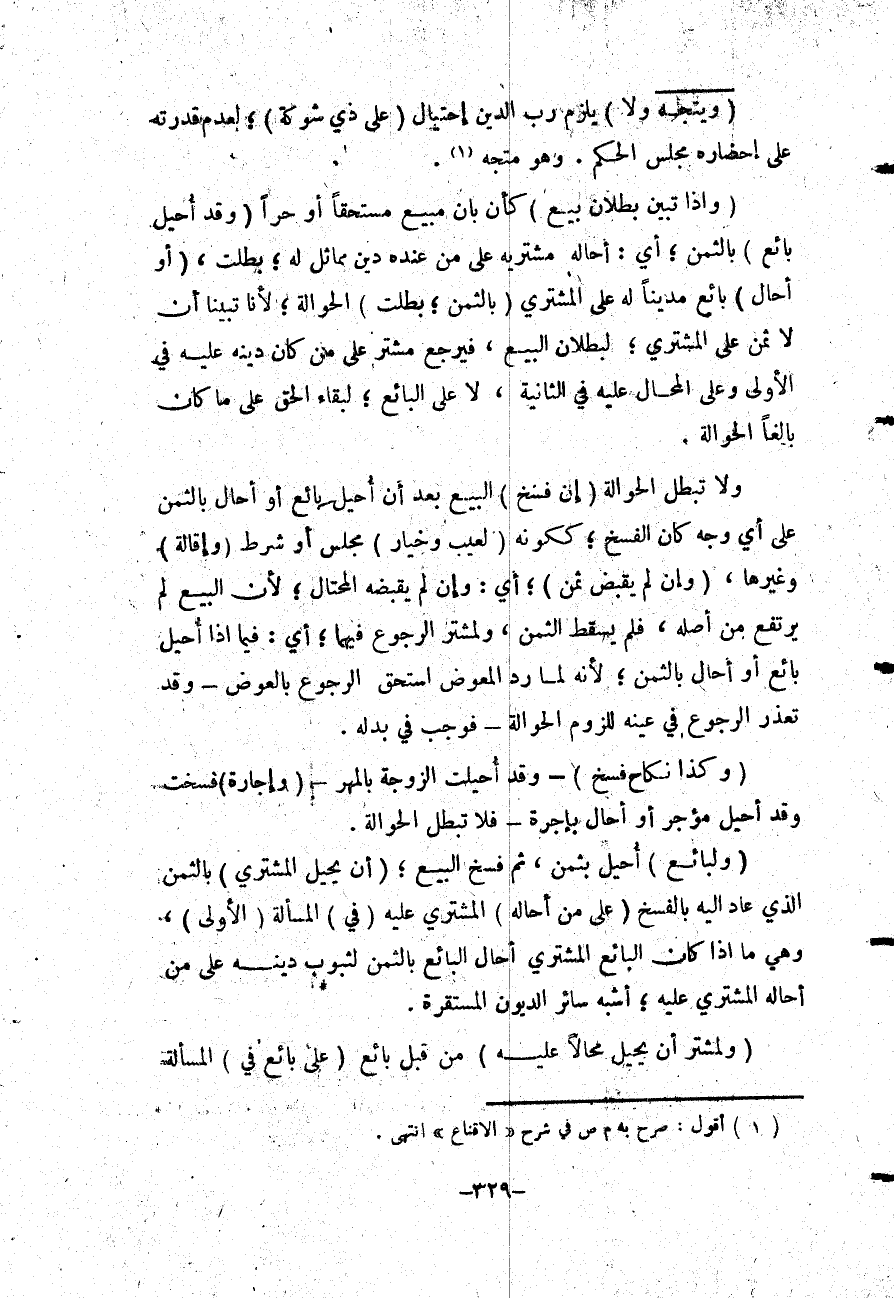(وَإِذَا تَبَيَّنَ بُطْلَانُ بَيْعٍ) كَأَنْ بَانَ مَبِيعٌ مُسْتَحَقًّا أَوْ حُرًّا (وَقَدْ أُحِيلَ بَائِعُ) الثَّمَنَ، أَيْ: أَحَالَهُ مُشْتَرِيهِ عَلَى مَنْ عِنْدَهُ دَيْنٌ مُمَاثِلٌ لَهُ؛ بَطَلَتْ، (أَوْ أَحَالَ) بَائِعٌ مَدِينًا لَهُ عَلَى الْمُشْتَرِي (بِالثَّمَنِ؛ بَطَلَتْ) الْحَوَالَةُ؛ لِأَنَّا تَبَيَّنَّا أَنْ لَا ثَمَنَ عَلَى الْمُشْتَرِي؛ لِبُطْلَانِ الْبَيْعِ، فَيَرْجِعُ مُشْتَرٍ عَلَى مَنْ كَانَ دَيْنُهُ عَلَيْهِ فِي الْأُولَى وَعَلَى الْمُحَالِ عَلَيْهِ فِي الثَّانِيَةِ، لَا عَلَى الْبَائِعِ؛ لِبَقَاءِ الْحَقِّ عَلَى مَا كَانَ بَالِغًا الْحَوَالَةَ.