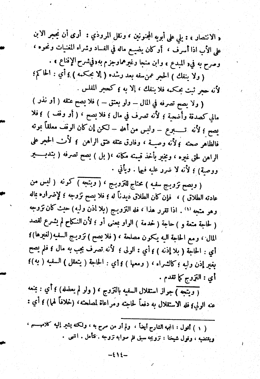 (وَيَتَّجِهُ) جَوَازُ اسْتِقْلَالِ السَّفِيهِ بِالتَّزَوُّجِ (وَلَوْ لَمْ يَعْضُلْهُ) ؛ أَيْ: يَمْنَعُهُ عَنْهُ الْوَلِيُّ؛ فَلَهُ الِاسْتِقْلَالُ بِهِ دَفْعًا لِحَاجَتِهِ وَمُرَاعَاةً لِمَصْلَحَتِهِ، (خِلَافًا لَهُمَا) ؛ أَيْ: