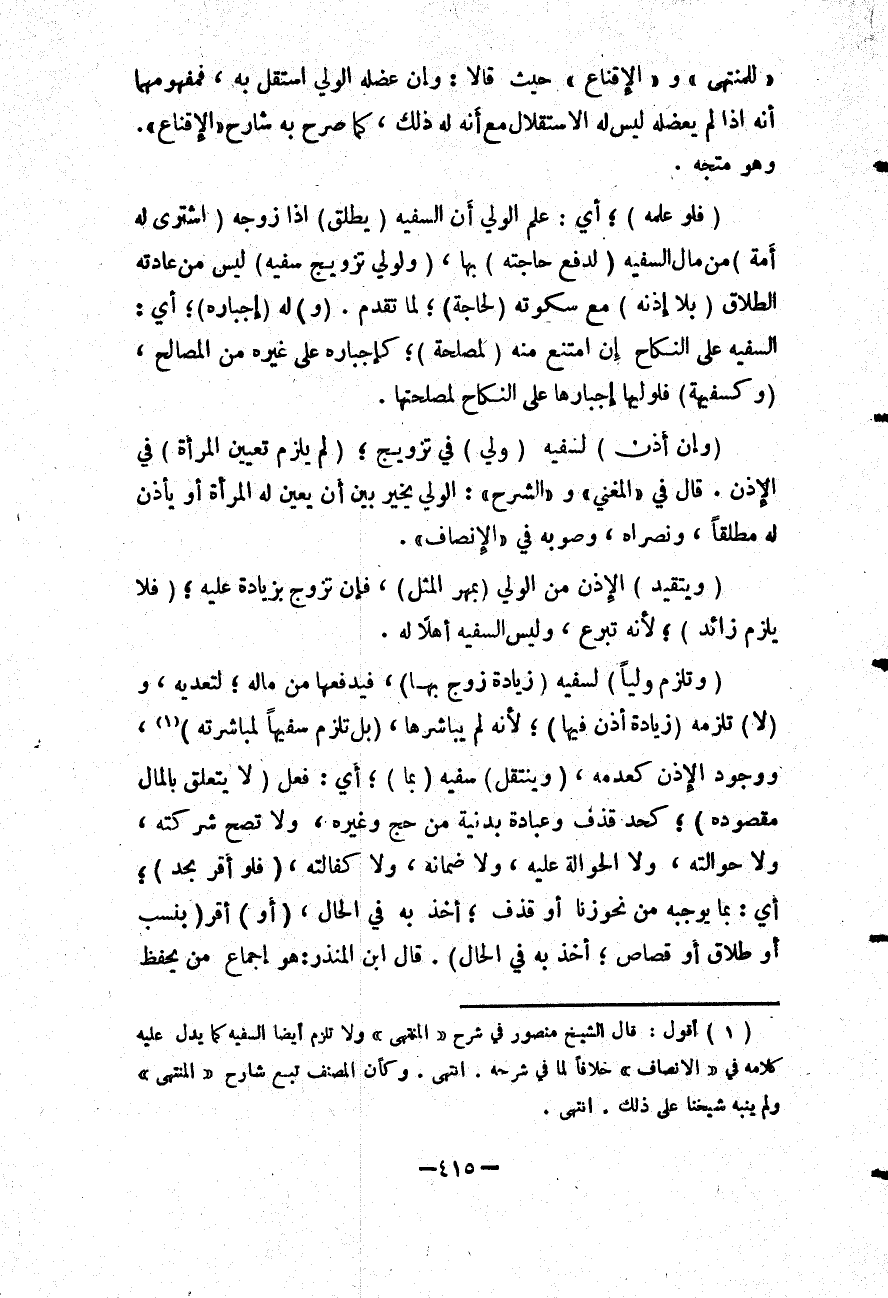 (وَيَنْتَقِلُ) سَفِيهٌ (بِمَا) ؛ أَيْ: فَعَلَ (لَا يَتَعَلَّقُ بِالْمَالِ مَقْصُودِهِ) ؛ كَحَدِّ قَذْفٍ وَعِبَادَةٍ بَدَنِيَّةٍ مِنْ حَجٍّ وَغَيْرِهِ، وَلَا تَصِحُّ شَرِكَتُهُ، وَلَا حَوَالَتُهُ، وَلَا الْحَوَالَةُ عَلَيْهِ، وَلَا ضَمَانُهُ، وَلَا كَفَالَتُهُ، (فَلَوْ أَقَرَّ بِحَدٍّ) ؛ أَيْ: بِمَا يُوجِبُهُ مِنْ نَحْوِ زِنًا أَوْ قَذْفٍ؛ أُخِذَ بِهِ فِي الْحَالِ، (أَوْ) أَقَرَّ (بِنَسَبٍ أَوْ طَلَاقٍ أَوْ قِصَاصٍ؛ أُخِذَ بِهِ فِي الْحَالِ) .