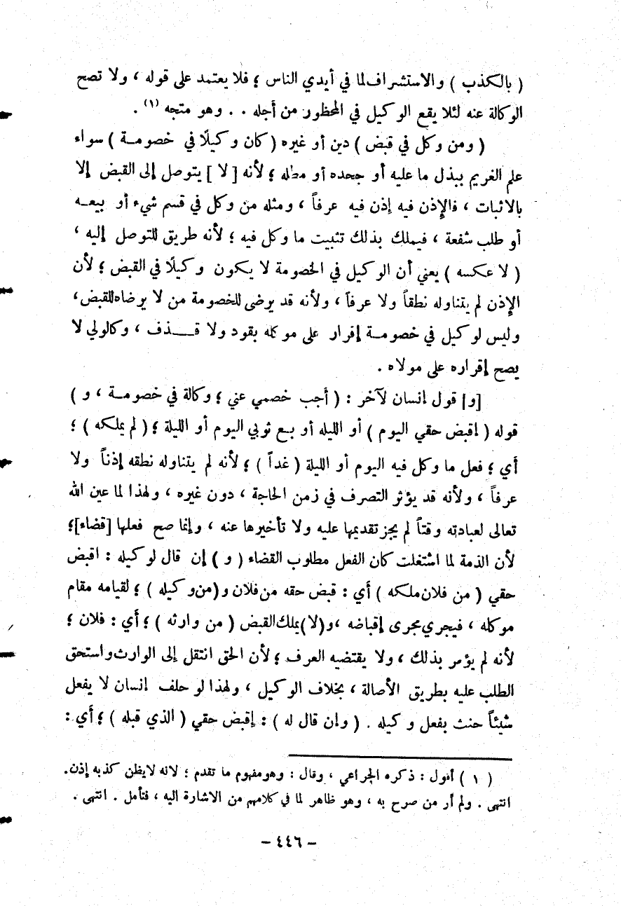 (وَمَنْ وَكَّلَ فِي قَبْضِ) دَيْنٍ أَوْ غَيْرِهِ (كَانَ وَكِيلًا فِي خُصُومَةٍ) سَوَاءٌ عَلِمَ الْغَرِيمُ بِبَذْلِ مَا عَلَيْهِ أَوْ جَحَدَهُ أَوْ مَطَلَهُ؛ لِأَنَّهُ [لَا] يُتَوَصَّلُ إلَى الْقَبْضِ إلَّا بِالْإِثْبَاتِ، فَالْإِذْنُ فِيهِ إذْنٌ فِيهِ عُرْفًا، وَمِثْلُهُ مَنْ وُكِّلَ فِي قَسْمِ شَيْءٍ أَوْ بَيْعِهِ أَوْ طَلَبِ شُفْعَةٍ، فَيَمْلِكُ بِذَلِكَ تَثْبِيتَ مَا وُكِّلَ فِيهِ؛ لِأَنَّهُ طَرِيقٌ لِلتَّوَصُّلِ إلَيْهِ، (لَا عَكْسُهُ) يَعْنِي أَنَّ الْوَكِيلَ فِي الْخُصُومَةِ لَا يَكُونُ وَكِيلًا فِي الْقَبْضِ؛ لِأَنَّ الْإِذْنَ لَمْ يَتَنَاوَلْهُ نُطْقًا وَلَا عُرْفًا، وَلِأَنَّهُ قَدْ يَرْضَى لِلْخُصُومَةِ مَنْ لَا يَرْضَاهُ لِلْقَبْضِ، وَلَيْسَ لِوَكِيلٍ فِي خُصُومَةِ إقْرَارٍ عَلَى مُوَكِّلِهِ بِقَوَدٍ وَلَا قَذْفٍ، وَكَالْوَلِيِّ لَا يَصِحُّ إقْرَارُهُ عَلَى مَوْلَاهُ.