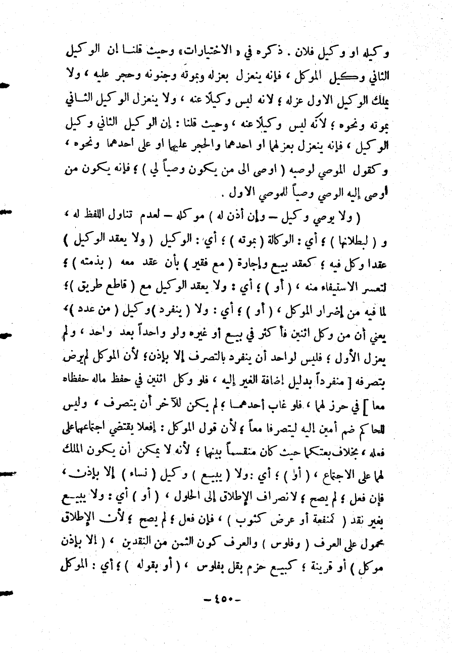 ذَكَرَهُ فِي " الِاخْتِيَارَاتِ " وَحَيْثُ قُلْنَا أَنَّ الْوَكِيلَ الثَّانِيَ وَكِيلُ الْمُوَكَّلِ، فَإِنَّهُ يَنْعَزِلُ بِعَزْلِهِ وَبِمَوْتِهِ وَجُنُونِهِ وَحَجَرٍ عَلَيْهِ، وَلَا يَمْلِكُ الْوَكِيلُ الْأَوَّلُ عَزْلَهُ؛ لِأَنَّهُ لَيْسَ وَكِيلًا عَنْهُ، وَلَا يَنْعَزِلُ الْوَكِيلُ الثَّانِي بِمَوْتِهِ وَنَحْوِهِ؛ لِأَنَّهُ لَيْسَ وَكِيلًا عَنْهُ، وَحَيْثُ قُلْنَا: إنَّ الْوَكِيلَ الثَّانِيَ وَكِيلُ الْوَكِيلِ، فَإِنَّهُ يَنْعَزِلُ بِعَزْلِهِمَا أَوْ أَحَدِهِمَا وَالْحَجْرُ عَلَيْهِمَا أَوْ عَلَى أَحَدِهِمَا وَنَحْوِهِ، وَكَقَوْلِ الْمُوصِي لِوَصِيِّهِ (أَوْصِي إلَى مَنْ يَكُونُ وَصِيًّا لِي) ؛ فَإِنَّهُ يَكُونُ مَنْ أَوْصَى إلَيْهِ الْوَصِيُّ وَصِيًّا لِلْمُوصِي الْأَوَّلِ.