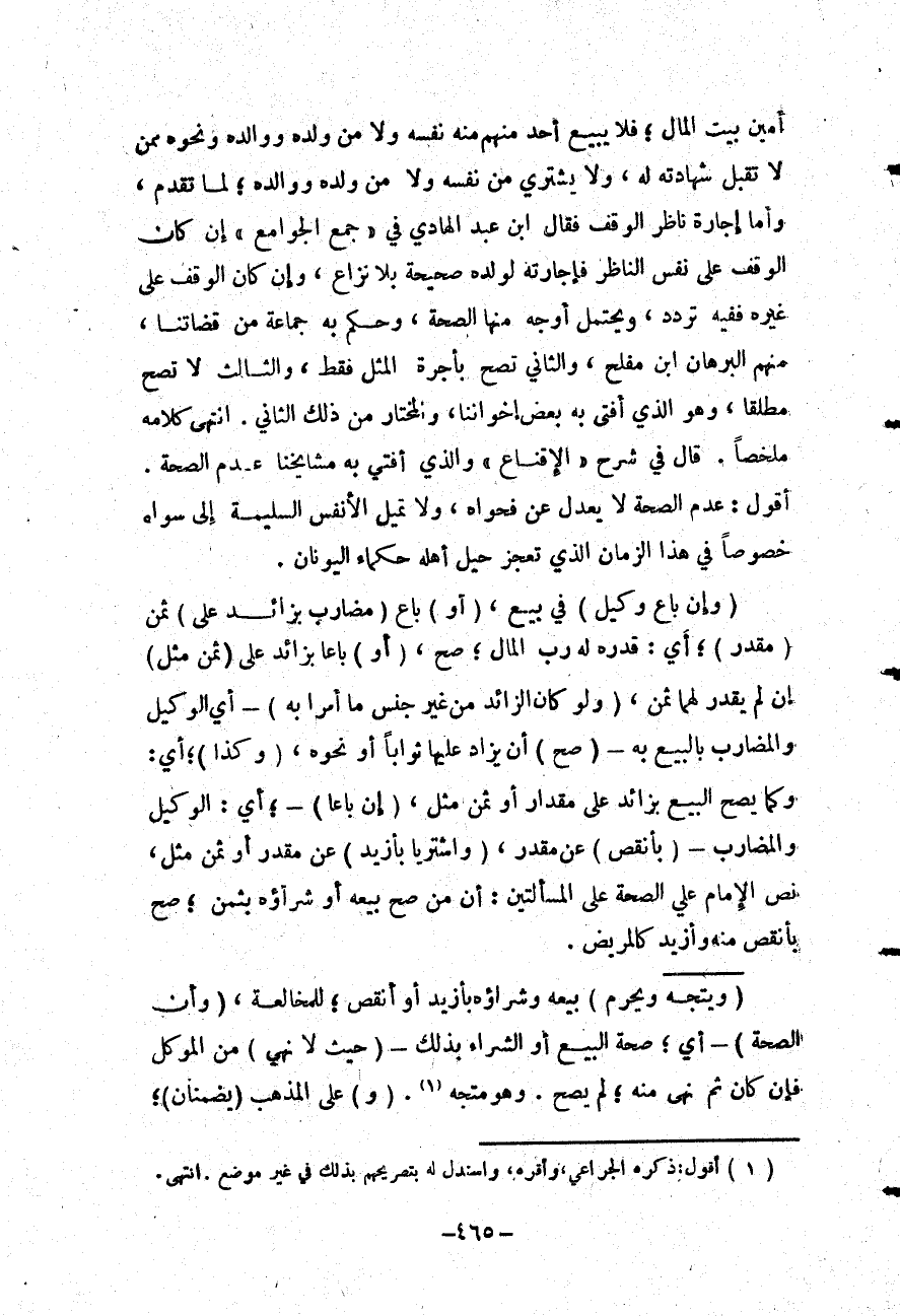 أَمِينُ بَيْتِ الْمَالِ؛ فَلَا يَبِيعُ أَحَدٌ مِنْهُمْ مِنْهُ نَفْسَهُ وَلَا مِنْ وَلَدِهِ وَوَالِدِهِ وَنَحْوِهِ مِمَّنْ لَا تُقْبَلُ شَهَادَتُهُ لَهُ، وَلَا يَشْتَرِي مِنْ نَفْسِهِ وَلَا مِنْ وَلَدِهِ وَوَالِدِهِ؛ لِمَا تَقَدَّمَ، وَأَمَّا إجَارَةُ نَاظِرِ الْوَقْفِ فَقَالَ ابْنُ عَبْدِ الْهَادِي فِي " جَمْعِ الْجَوَامِعِ " إنْ كَانَ الْوَقْفُ عَلَى نَفْسِ النَّاظِرِ، فَإِجَارَتُهُ لِوَلَدِهِ صَحِيحَةٌ؛ بِلَا نِزَاعٍ، وَإِنْ كَانَ الْوَقْفُ عَلَى غَيْرِهِ فَفِيهِ تَرَدُّدٌ، وَيُحْتَمَلُ أَوْجُهٌ مِنْهَا الصِّحَّةُ، وَحَكَمَ بِهِ جَمَاعَةٌ مِنْ قُضَاتِنَا، مِنْهُمْ الْبُرْهَانُ بْنُ مُفْلِحٍ، وَالثَّانِي تَصِحُّ بِأُجْرَةِ الْمِثْلِ فَقَطْ، وَالثَّالِثُ لَا تَصِحُّ مُطْلَقًا، وَهُوَ الَّذِي أَفْتَى بِهِ بَعْضُ إخْوَانِنَا، وَالْمُخْتَارُ مِنْ ذَلِكَ الثَّانِي. انْتَهَى كَلَامُهُ مُلَخَّصًا. قَالَ فِي شَرْحِ " الْإِقْنَاعِ " وَاَلَّذِي أَفْتَى بِهِ مَشَايِخُنَا عَدَمُ الصِّحَّةِ. أَقُولُ: عَدَمُ الصِّحَّةِ لَا يَعْدِلُ عَنْ فَحْوَاهُ، وَلَا تَمِيلُ الْأَنْفُسُ السَّلِيمَةُ إلَى سِوَاهُ خُصُوصًا فِي هَذَا الزَّمَانِ الَّذِي تُعْجِزُ حِيَلُ أَهْلِهِ حُكَمَاءَ الْيُونَانِ