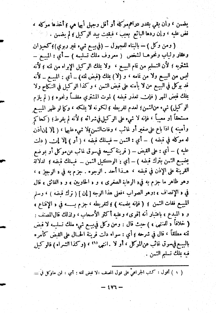 قَالَ فِي شَرْحِهِ أَيْ: سَوَاءٌ دَلَّتْ قَرِينَةُ الْحَالِ عَلَى الْقَبْضِ كَأَمْرِهِ بِالْبَيْعِ فِي سُوقٍ غَائِبٍ عَنْ الْمُوَكِّلِ، أَوْ لَا. انْتَهَى، (وَكَذَا الشِّرَاءُ) فَالْوَكِيلُ فِيهِ يَمْلِكُ تَسْلِيمَ الثَّمَنِ.