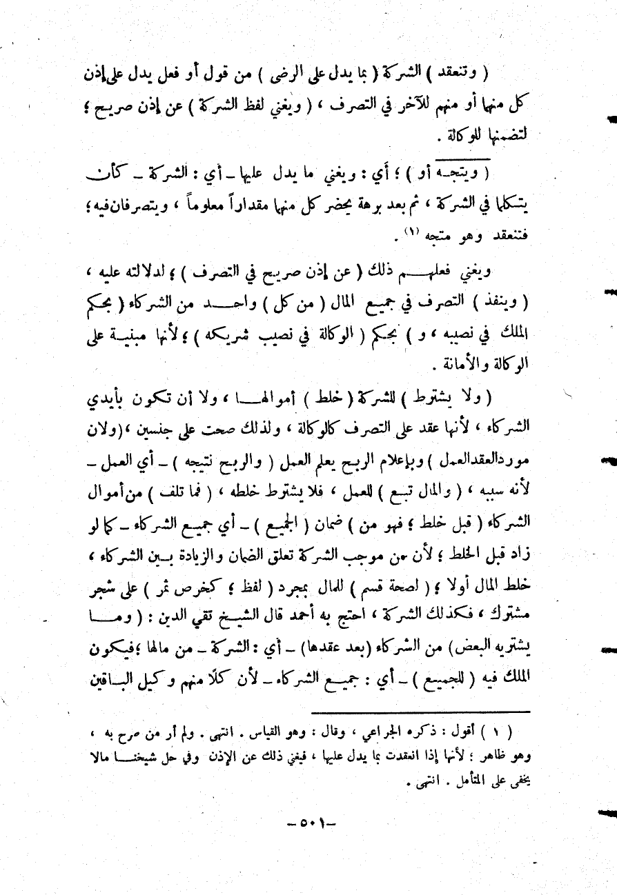 قَالَ الشَّيْخُ تَقِيُّ الدِّينِ: (وَمَا يَشْتَرِيهِ الْبَعْضُ) مِنْ الشُّرَكَاءِ (بَعْدَ عَقْدِهَا) - أَيْ: الشَّرِكَةِ - مِنْ مَالِهَا؛ فَيَكُونُ الْمِلْكُ فِيهِ (لِلْجَمِيعِ) - أَيْ: جَمِيعِ الشُّرَكَاءِ - لِأَنَّ كُلًّا مِنْهُمْ وَكِيلُ الْبَاقِينَ