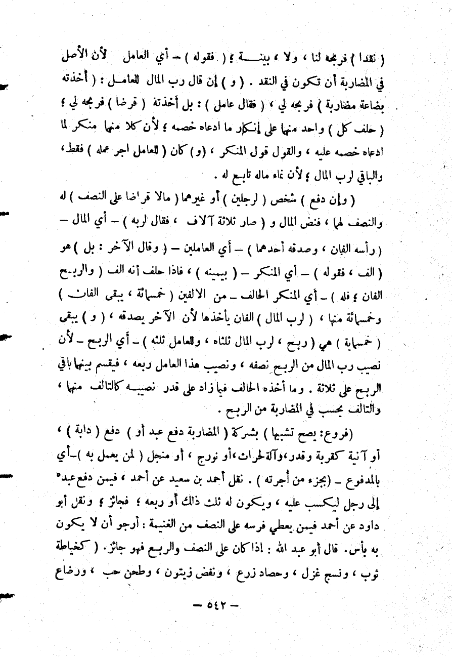 (نَقْدًا) فَرِبْحُهُ لَنَا، وَلَا بَيِّنَةَ؛ (فَقَوْلُهُ) - أَيْ الْعَامِلِ لِأَنَّ الْأَصْلَ فِي الْمُضَارَبَةِ أَنْ تَكُونَ فِي النَّقْدِ.