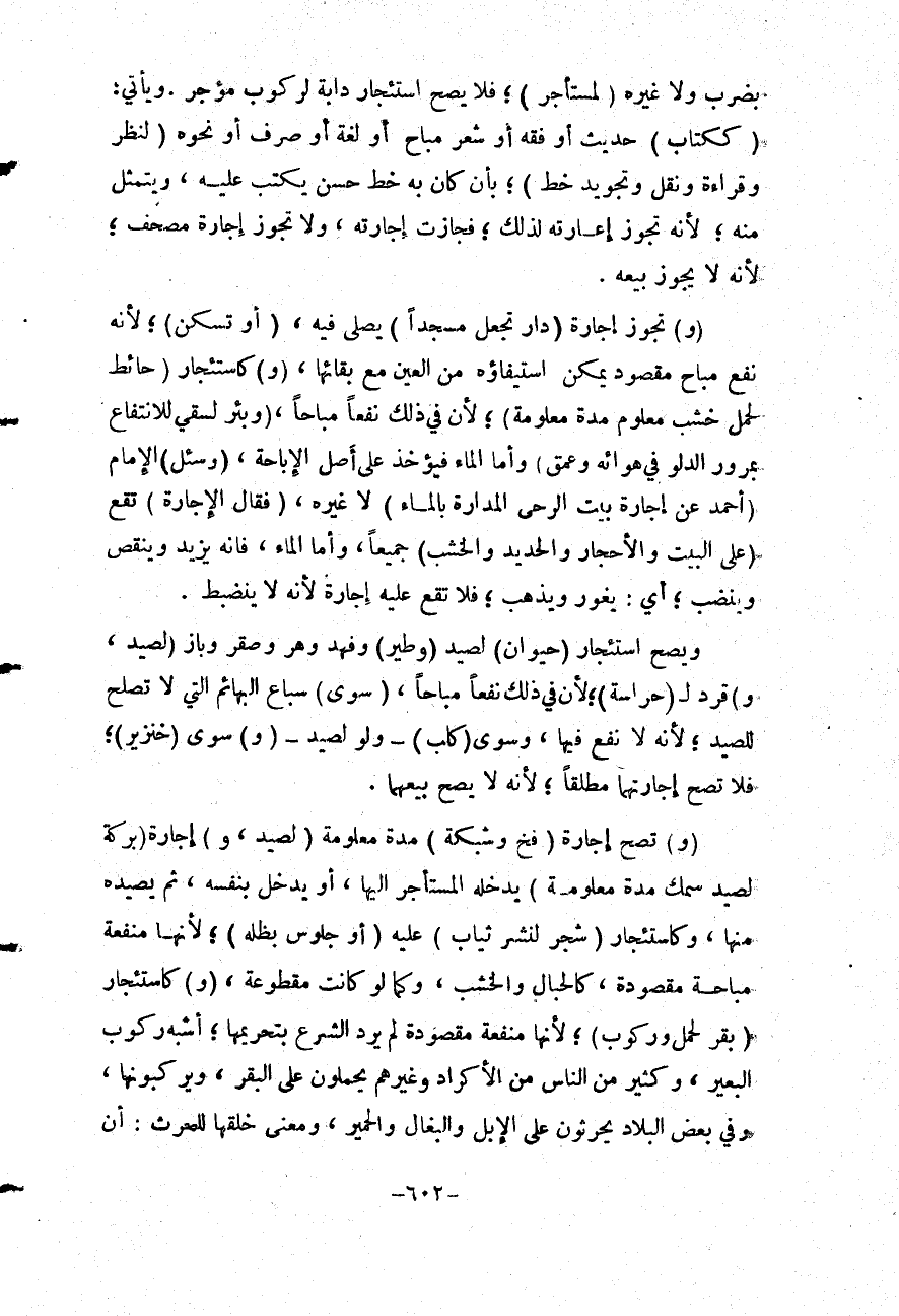 وَيَأْتِي: (كَكِتَابِ) حَدِيثٍ أَوْ فِقْهٍ أَوْ شِعْرٍ مُبَاحٍ أَوْ لُغَةٍ أَوْ صَرْفٍ أَوْ نَحْوِهِ (لِنَظَرٍ وَقِرَاءَةٍ وَنَقْلٍ وَتَجْوِيدِ خَطٍّ) ؛ بِأَنْ كَانَ بِهِ خَطٌّ حَسَنٌ يُكْتَبُ عَلَيْهِ، وَيَتَمَثَّلُ مِنْهُ؛ لِأَنَّهُ تَجُوزُ إعَارَتُهُ لِذَلِكَ؛ فَجَازَتْ إجَارَتُهُ، وَلَا تَجُوزُ إجَارَةُ مُصْحَفٍ؛ لِأَنَّهُ لَا يَجُوزُ بَيْعُهُ.
