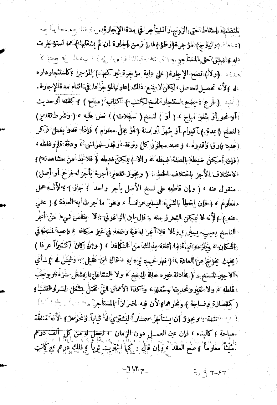 (فَرْعٌ: يَصِحُّ اسْتِئْجَارُ نَاسِخٍ لِكَتْبِ) كِتَابٍ (مُبَاحٍ) ؛ كَفِقْهٍ أَوْ حَدِيثٍ أَوْ نَحْوٍ أَوْ شِعْرٍ مُبَاحٍ، (أَوْ) لِنَسْخِ (سِجِلَّاتٍ) ، نَصَّ عَلَيْهِ، (وَشُرِطَ تَقْدِيرٌ) لِنَسْخٍ (بِمُدَّةٍ) كَيَوْمٍ أَوْ شَهْرٍ أَوْ سَنَةٍ (أَوْ عَمَلٍ مَعْلُومٍ، فَإِذَا قُدِّرَ بِعَمَلٍ ذَكَرَ عَدَدَ وَرَقٍ وَقَدْرَهُ، وَعَدَدَ سُطُورِ كُلِّ وَرَقَةٍ، وَقَدْرَ حَوَاشٍ، وَدِقَّةَ قَلَمٍ وَغِلَظِهِ، فَإِنْ أَمْكَنَ ضَبْطُهُ بِالصِّفَةِ ضَبَطَهُ، وَإِلَّا) يُمْكِنْ ضَبْطُهُ (فَلَا بُدَّ مِنْ مُشَاهَدَتِهِ) ؛ لِاخْتِلَافِ الْأَجْرِ بِاخْتِلَافِ الْخَطِّ.