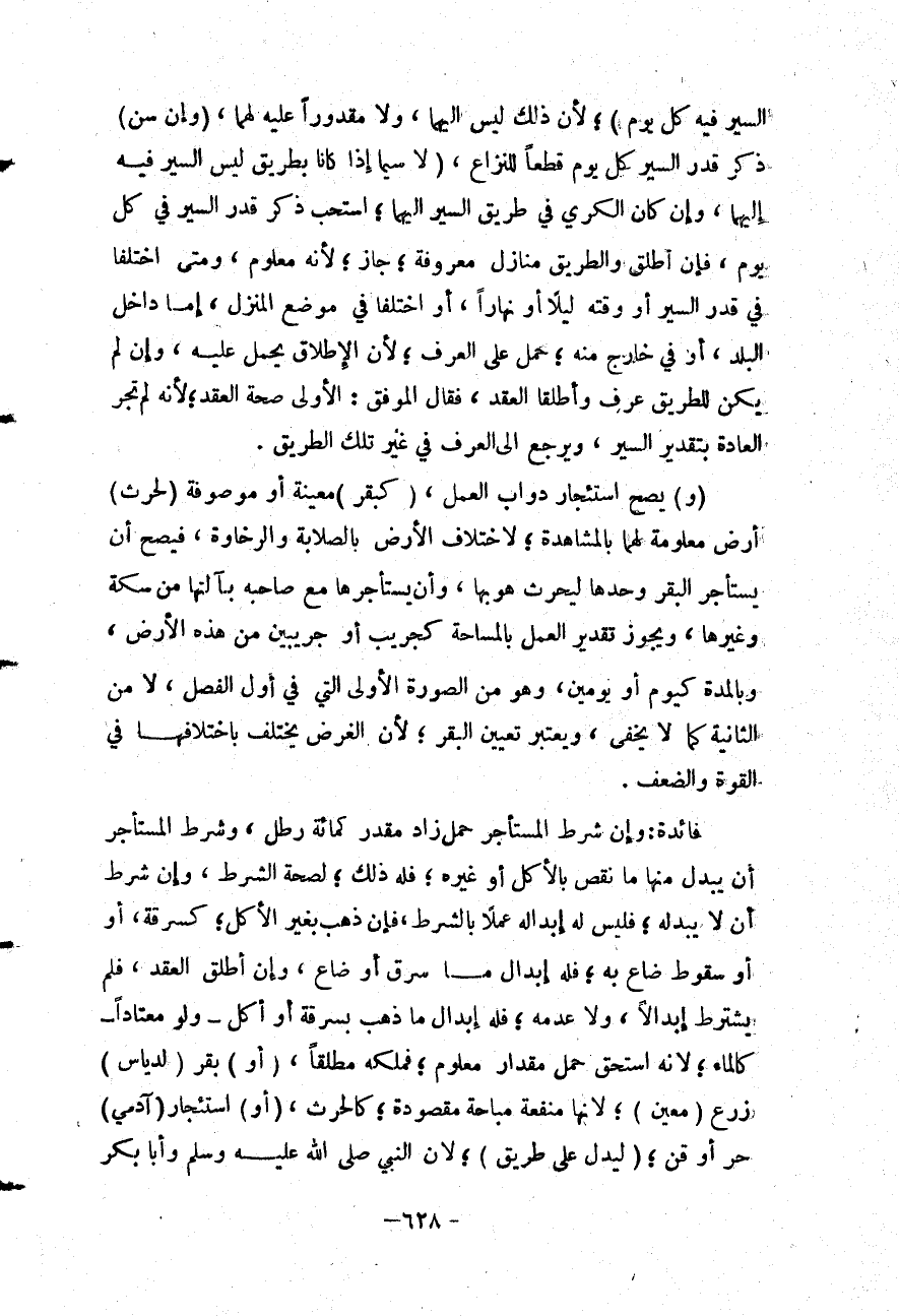 السَّيْرِ فِيهِ كُلَّ يَوْمٍ) ؛ لِأَنَّ ذَلِكَ لَيْسَ إلَيْهِمَا، وَلَا مَقْدُورًا عَلَيْهِ لَهُمَا، (وَإِنْ سُنَّ) ذِكْرُ قَدْرِ السَّيْرِ كُلَّ يَوْمٍ قَطْعًا لِلنِّزَاعِ، (لَا سِيَّمَا إذَا كَانَا بِطَرِيقٍ لَيْسَ السَّيْرُ فِيهِ إلَيْهِمَا) ، وَإِنْ كَانَ الْكَرْيُ فِي طَرِيقِ السَّيْرِ إلَيْهِمَا؛ اُسْتُحِبَّ ذِكْرُ قَدْرِ السَّيْرِ فِي كُلِّ يَوْمٍ، فَإِنْ أَطْلَقَ وَالطَّرِيقُ مَنَازِلُ مَعْرُوفَةٌ؛ جَازَ؛ لِأَنَّهُ مَعْلُومٌ، وَمَتَى اخْتَلَفَا فِي قَدْرِ السَّيْرِ أَوْ وَقْتِهِ لَيْلًا أَوْ نَهَارًا، أَوْ اخْتَلَفَا فِي مَوْضِعِ الْمَنْزِلِ، إمَّا دَاخِلَ الْبَلَدِ، أَوْ فِي خَارِجٍ مِنْهُ؛ حُمِلَ عَلَى الْعُرْفِ؛ لِأَنَّ الْإِطْلَاقَ يُحْمَلُ عَلَيْهِ، وَإِنْ لَمْ يَكُنْ لِلطَّرِيقِ عُرْفٌ وَأَطْلَقَا الْعَقْدَ، فَقَالَ الْمُوَفَّقُ: الْأَوْلَى صِحَّةُ الْعَقْدُ؛ لِأَنَّهُ لَمْ تَجْرِ الْعَادَةُ بِتَقْدِيرِ السَّيْرِ، وَيَرْجِعُ إلَى الْعُرْفِ فِي غَيْرِ تِلْكَ الطَّرِيقِ.