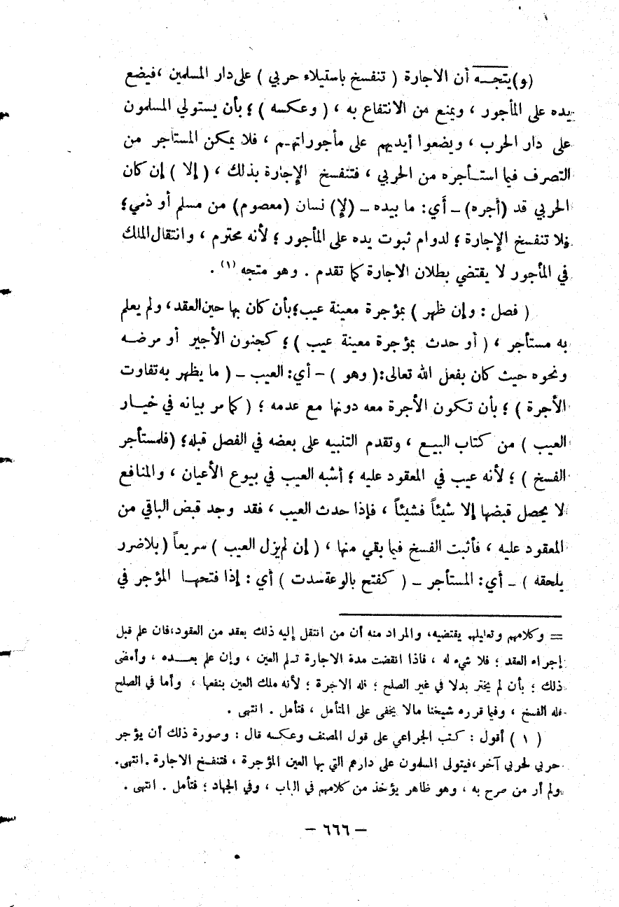 (وَ) يَتَّجِهُ أَنَّ الْإِجَارَةَ (تَنْفَسِخُ بِاسْتِيلَاءِ حَرْبِيٍّ) عَلَى دَارِ الْمُسْلِمِينَ، فَيَضَعُ يَدَهُ عَلَى الْمَأْجُورِ، وَيَمْنَعُ مِنْ الِانْتِفَاعِ بِهِ، (وَعَكْسُهُ) ؛ بِأَنْ يَسْتَوْلِيَ الْمُسْلِمُونَ عَلَى دَارِ الْحَرْبِ، وَيَضَعُوا أَيْدِيَهُمْ عَلَى مَأْجُورَاتِهِمْ، فَلَا يُمَكَّنُ الْمُسْتَأْجِرُ مِنْ التَّصَرُّفِ فِيمَا اسْتَأْجَرَهُ مِنْ الْحَرْبِيِّ، فَتَنْفَسِخُ الْإِجَارَةُ بِذَلِكَ، (إلَّا) إنْ كَانَ الْحَرْبِيُّ قَدْ (أَجَّرَهُ) - أَيْ: مَا بِيَدِهِ - (لِ) إنْسَانٍ (مَعْصُومٍ) مِنْ مُسْلِمٍ أَوْ ذِمِّيٍّ؛ فَلَا تَنْفَسِخُ الْإِجَارَةُ؛ لِدَوَامِ ثُبُوتِ يَدِهِ عَلَى الْمَأْجُورِ؛ لِأَنَّهُ مُحْتَرَمٌ، وَانْتِقَالُ الْمِلْكِ فِي الْمَأْجُورِ لَا يَقْتَضِي بُطْلَانَ الْإِجَارَةِ كَمَا تَقَدَّمَ. وَهُوَ مُتَّجِهٌ.